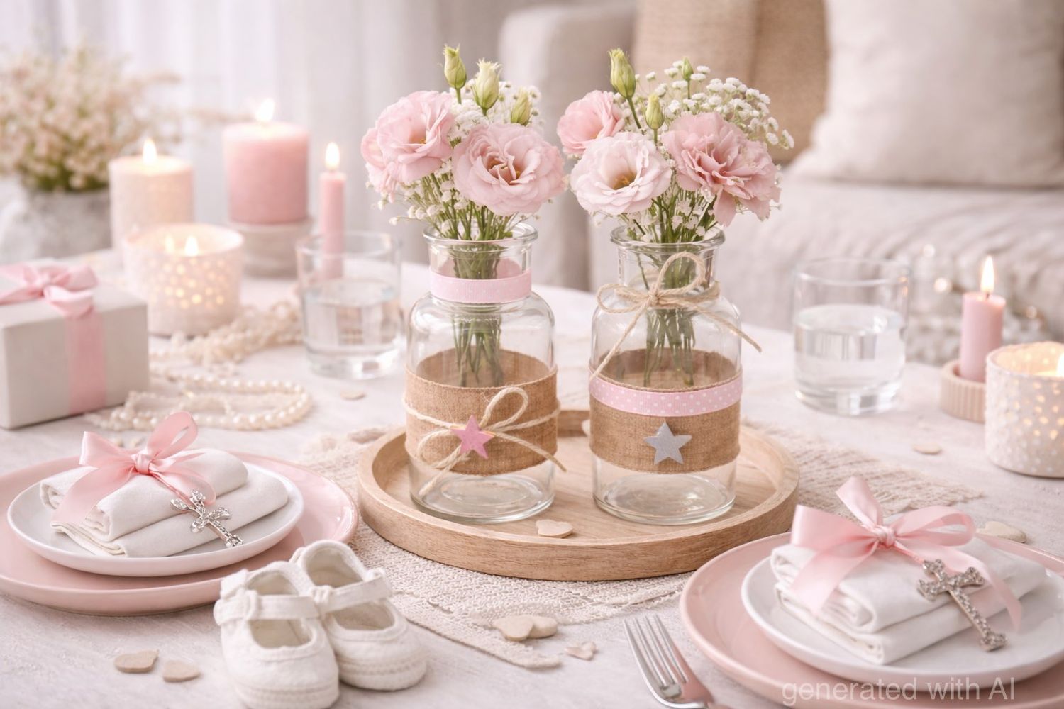 2 dekorierte Vasen für Taufe oder Geburt Mädchen – Handgefertigt von ZauberDeko