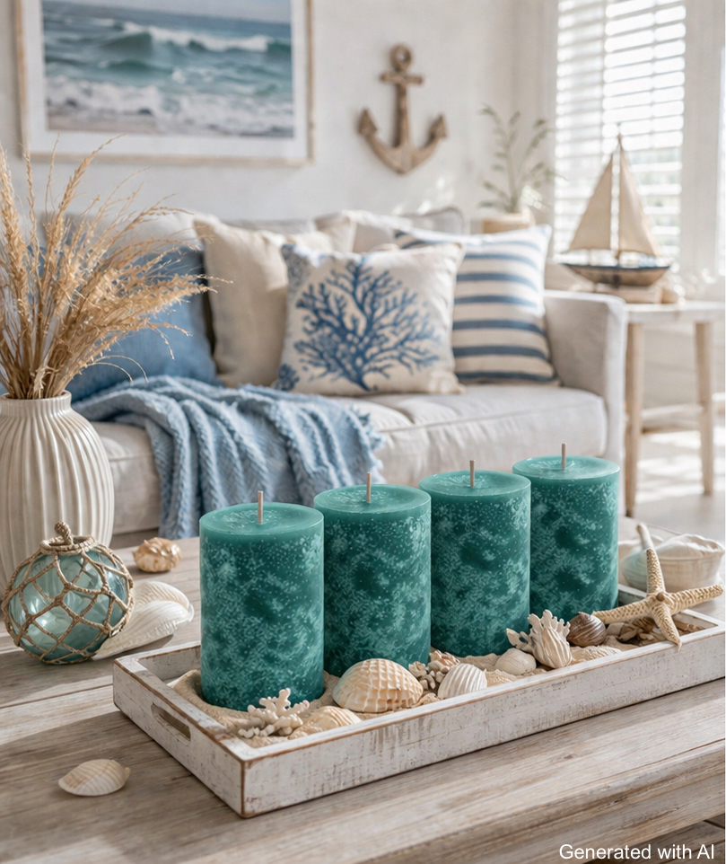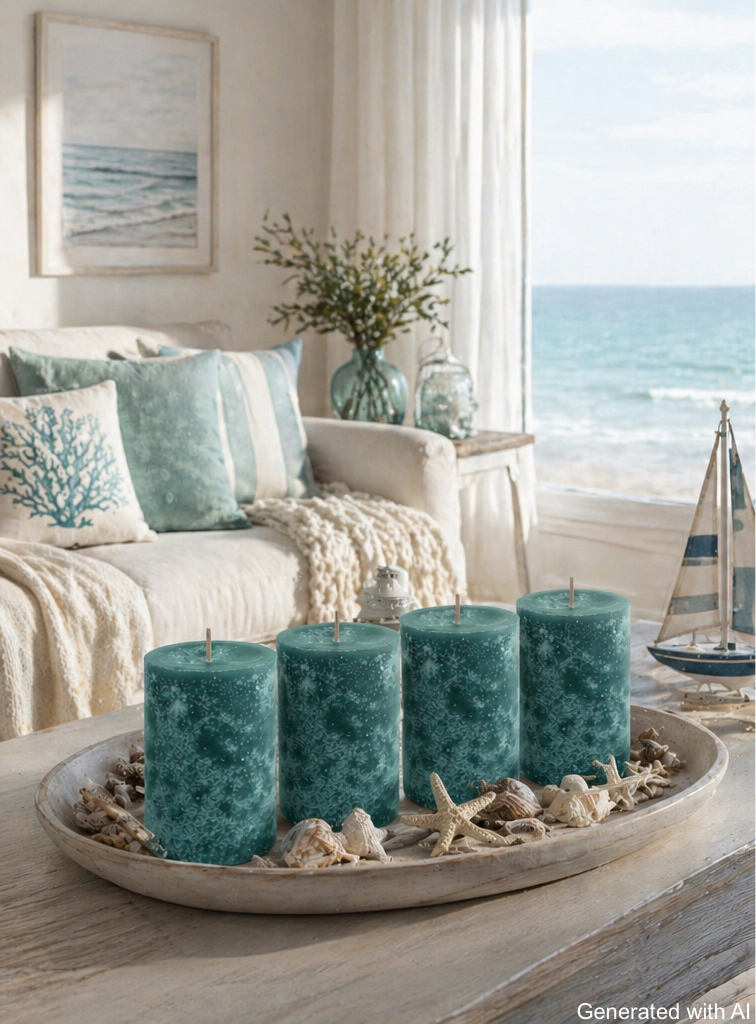 Stilvolle Stumpenkerzen im Seegrün – Handgefertigte Eleganz für Ihr Zuhause