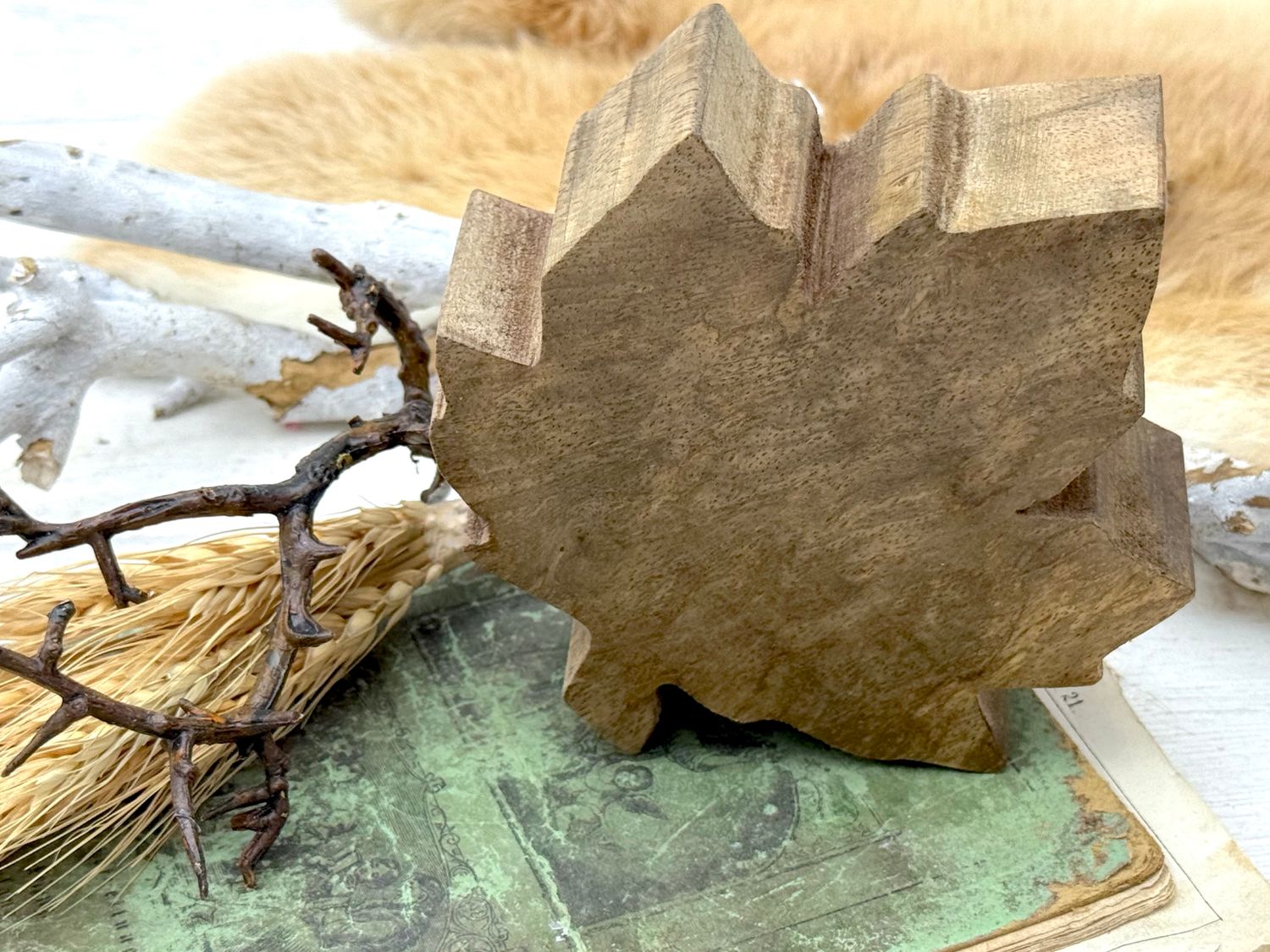 Natürlich schönes Ahornblatt aus Mangoholz als herbstliche Deko & Wohnaccessoire