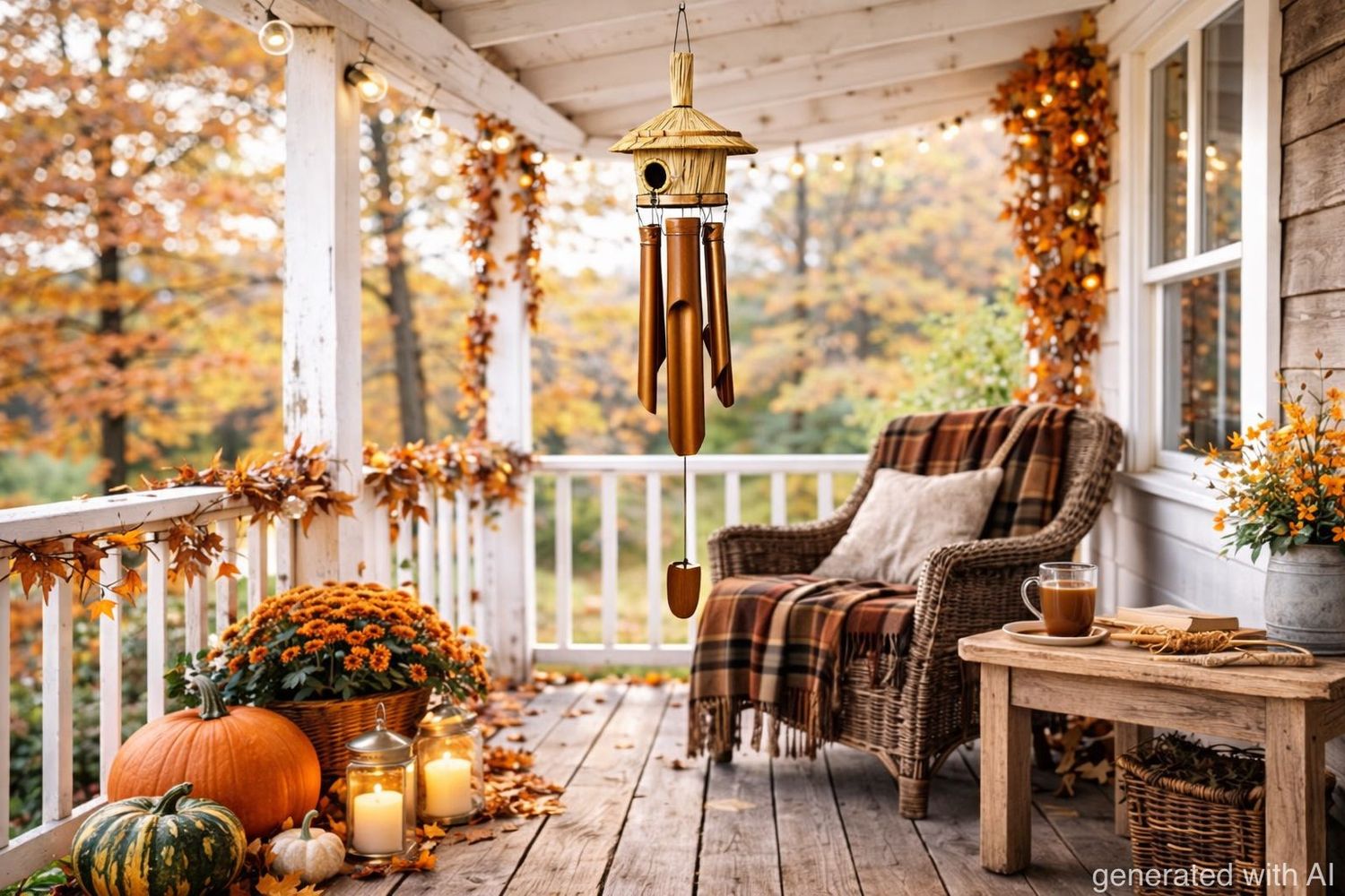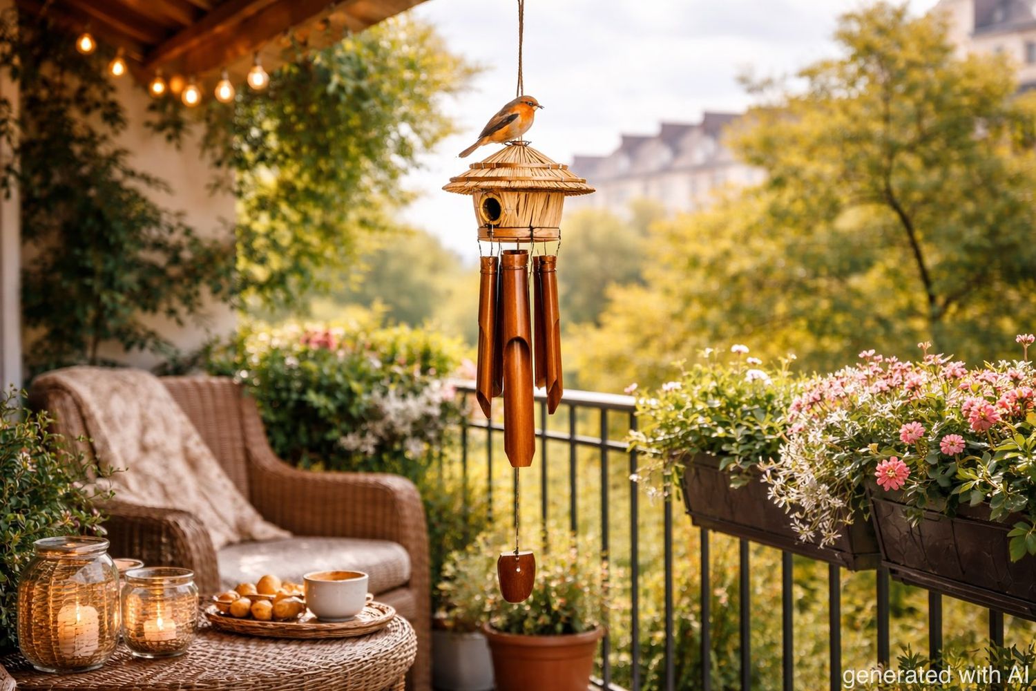 Klangspiel aus Bambus mit Vogelhaus – Feng Shui Windspiel für Garten & Balkon