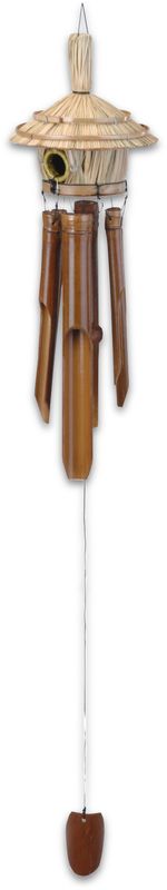 Ein Klangspiel aus Bambus in dunkel braun mit Vogelhaus mit einem beruhigenden Klang - Feng Shui Windklangspiel