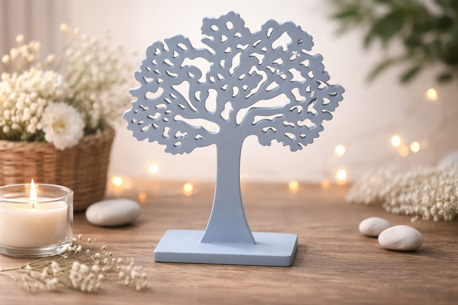 Baum des Lebens Aufsteller Holz Blau – Tischdeko Kommunion, Konfirmation, Taufe, Firmung & Hochzeit – Deko Glaube & Wachstum