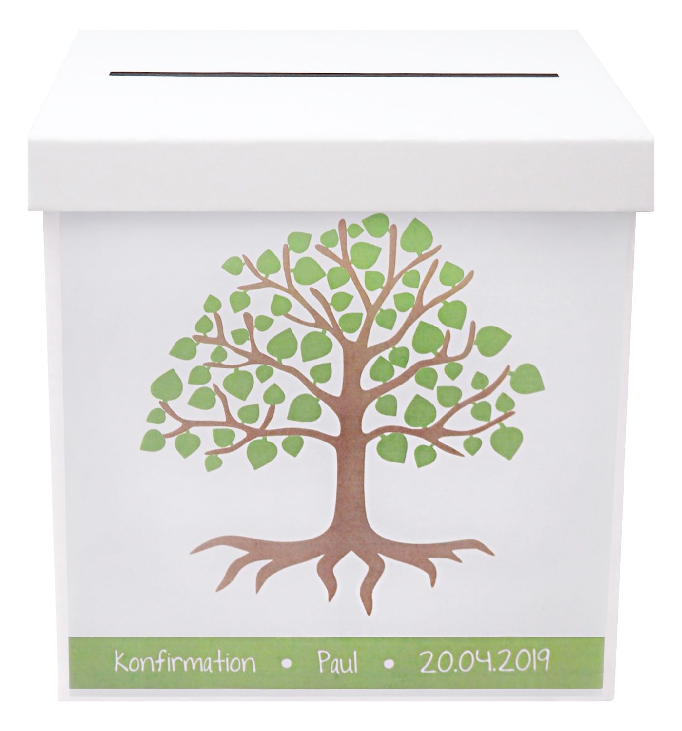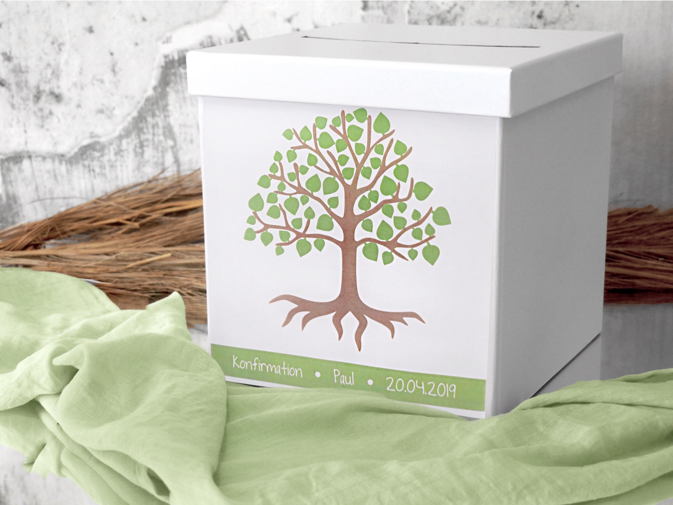 Briefbox mit Baum des Lebens Motiv - personalisiert mit Name, Anlass & Datum