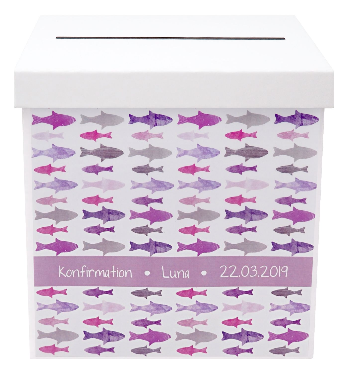 In dieser Kartenbox vereint sich das christliche Symbol Fisch mit modernem Design und frischen Farben.