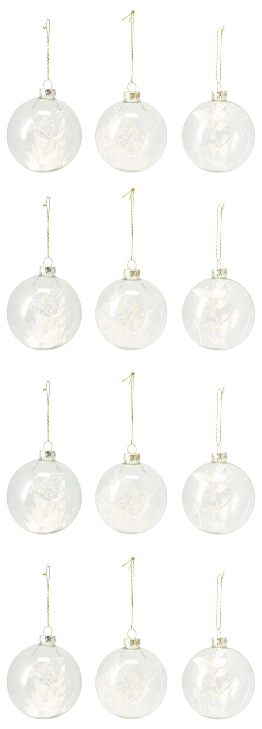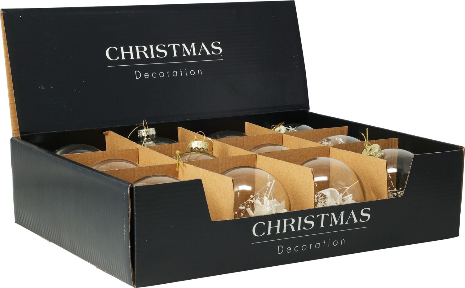 Christbaumkugeln Glas Ø 8cm mit Trockenblumen Weihnachtskugeln 12 Stück