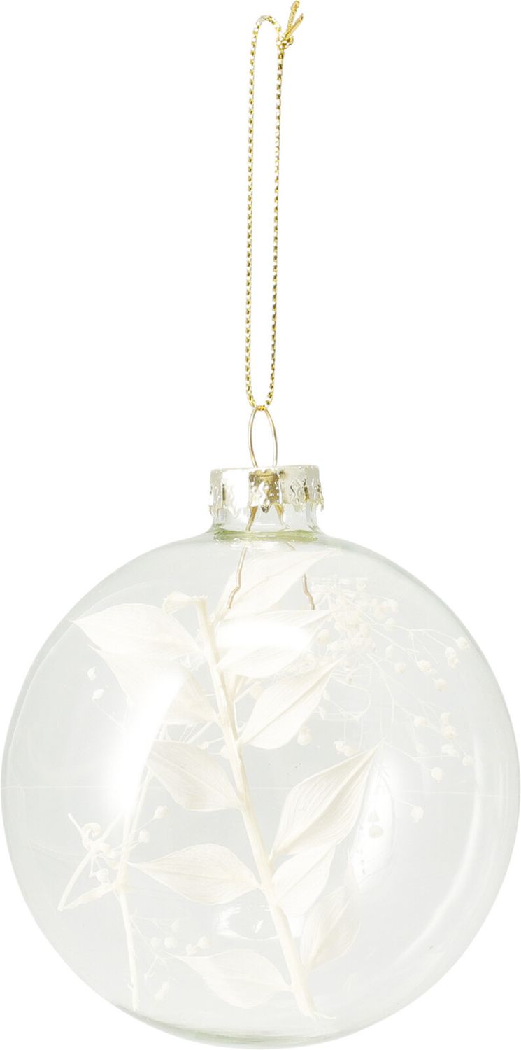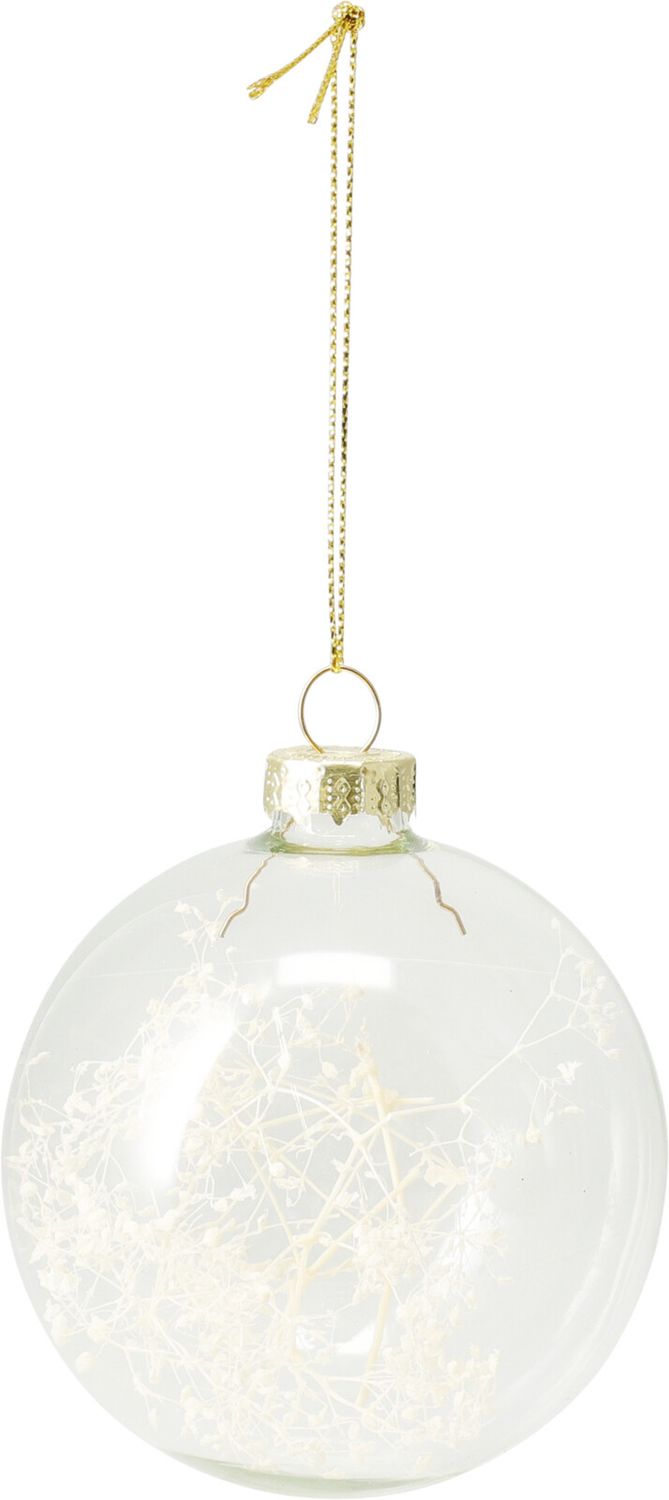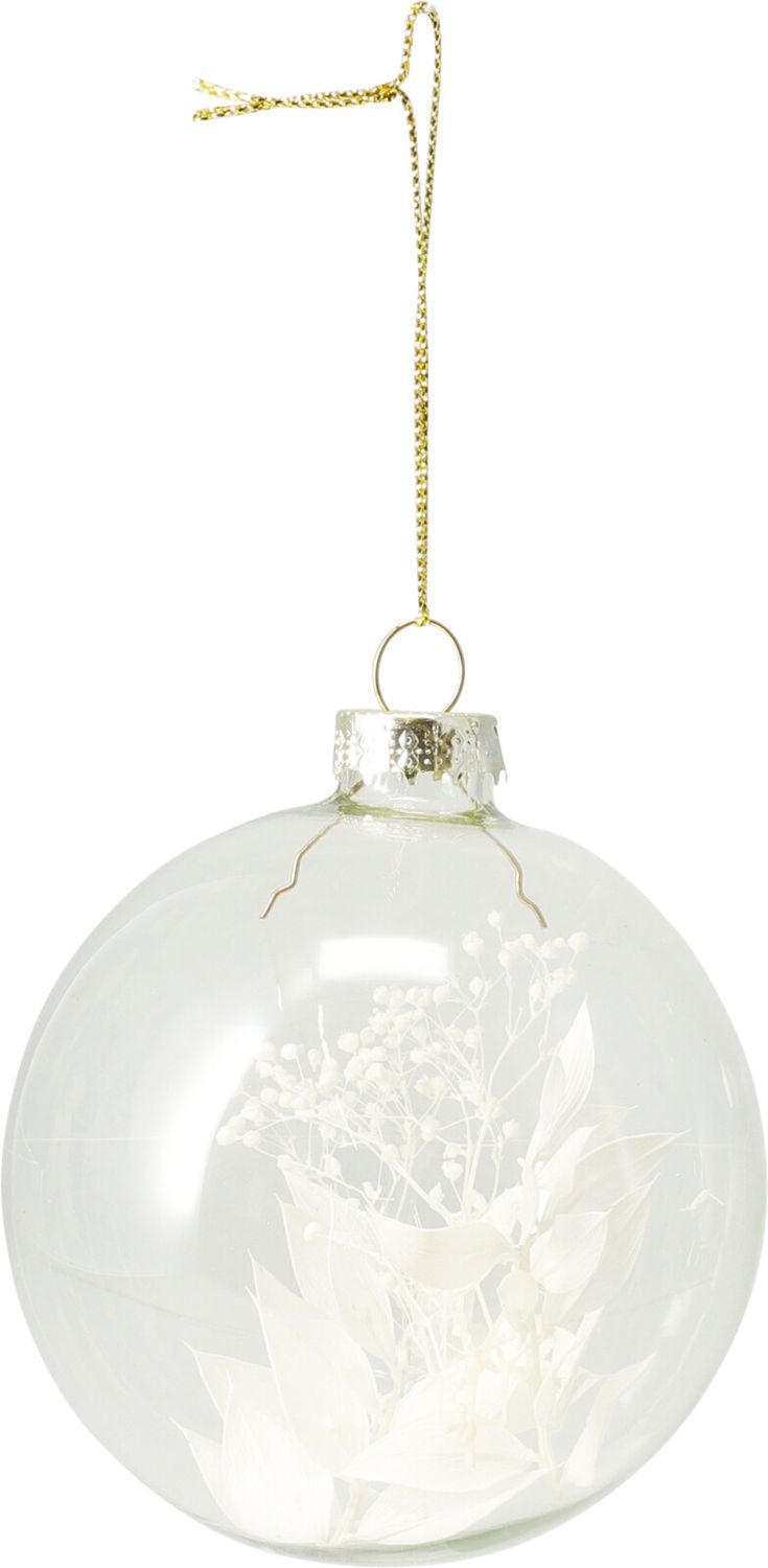 Weihnachtskugeln aus Glas gefüllt mit weißen Trockenblumen sind der neueste Trend im Boho-Stil - ware Natur Schönheiten
