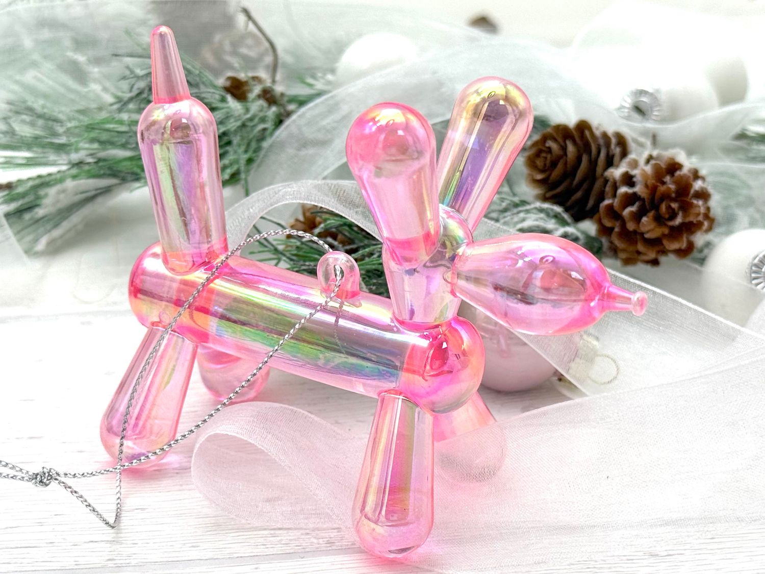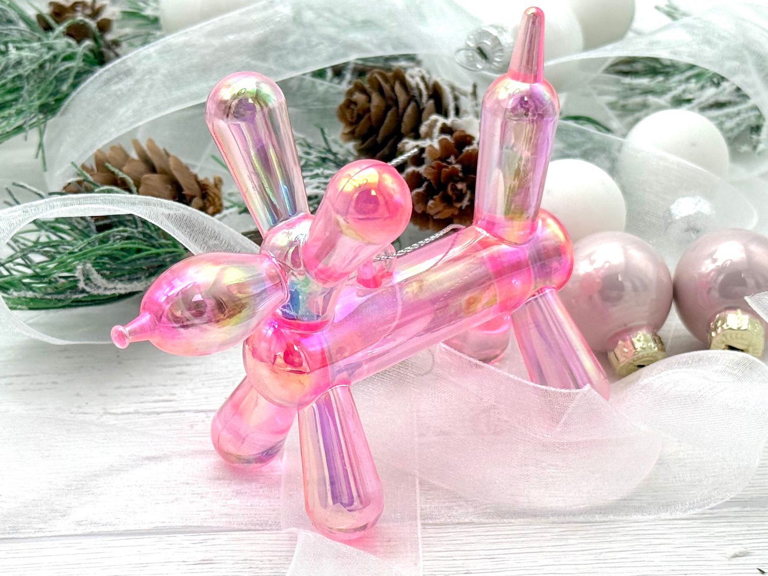 Schillernde Ballon-Hund aus Acryl als Christbaumschmuck und für jede Feier, bei der Rosa-Pink im Mittelpunkt steht