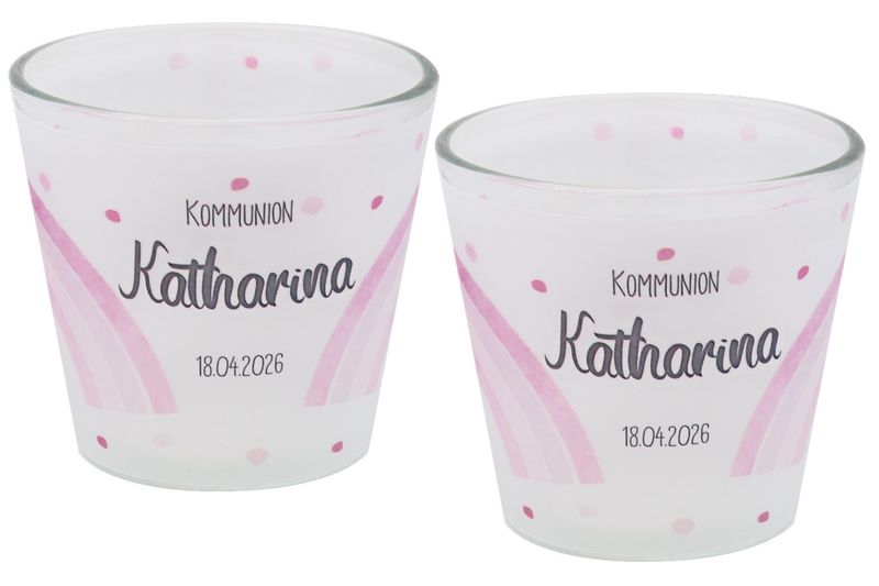 Personalisierbare Windlichter in Rosa mit Regenbogen – liebevolle Deko für Kommunion, Konfirmation & Taufe