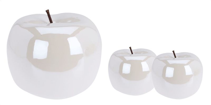 Deko Apfel Keramik Keramikapfel Perlmutt Weiß Glänzend Dekofigur Tischdeko Küche Esszimmer 3-er SET