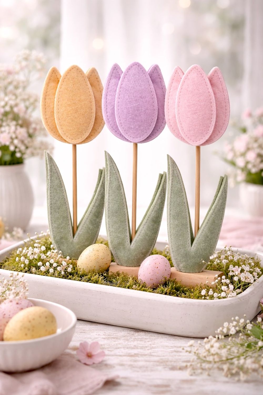 Bringen Sie mit dieser liebevoll gestalteten Filz-Tulpe frische Frühlingsstimmung in Ihr Zuhause!