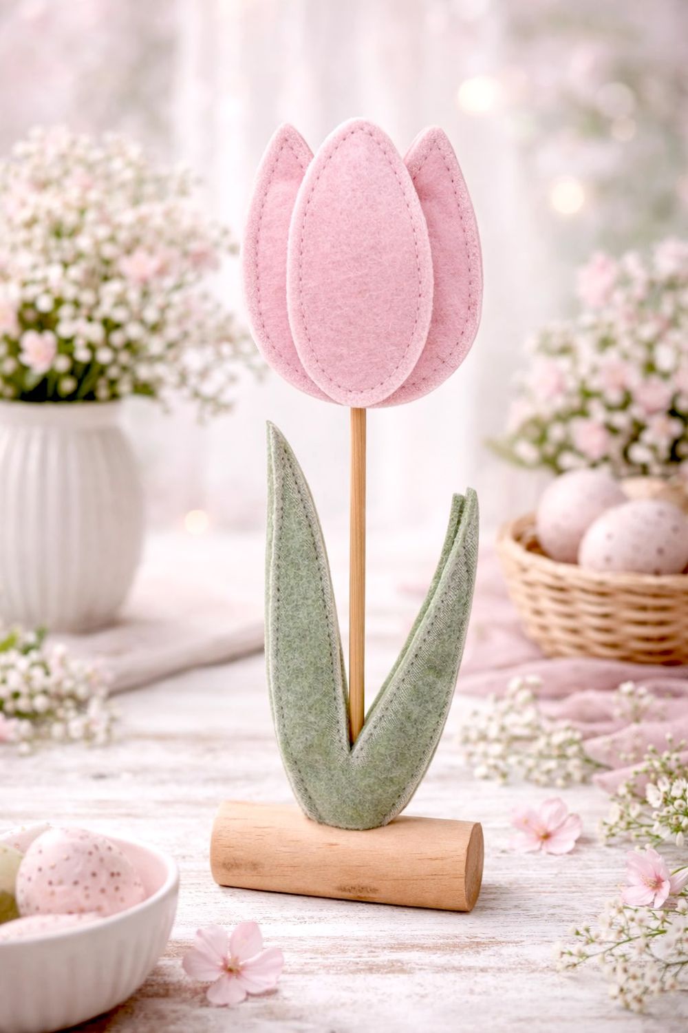 Filz-Tulpe mit Holzstiel – Frühlingshafte Deko zum Verlieben
