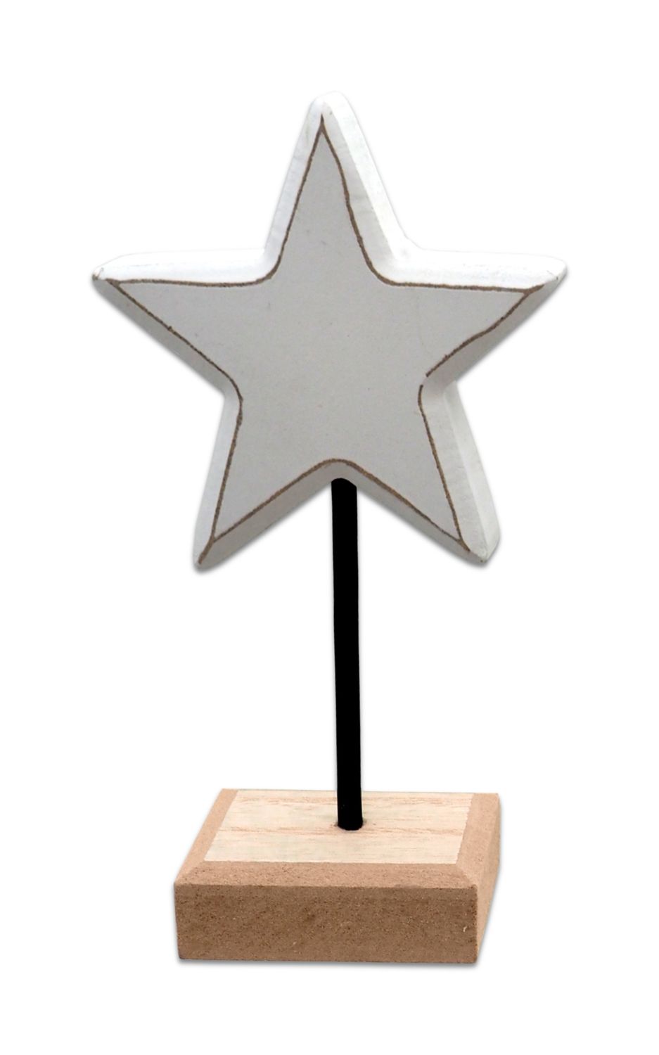 Ein Deko Aufsteller aus MDF Holz in Weiß mit schwarzem stiehl auf braunem Boden, wahlweise aus drei unterschiedlichen Motiven.