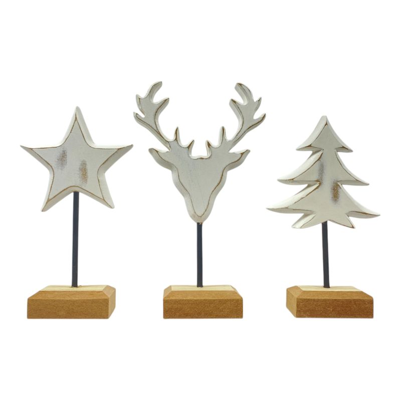 Ob einzeln oder als Trio arrangiert – diese dekorativen Holzfiguren sind ein zeitloser Blickfang, der Gemütlichkeit und Stil vereint. Ideal für die Weihnachtszeit, aber auch das ganze Jahr über ein schönes Wohnaccessoire!