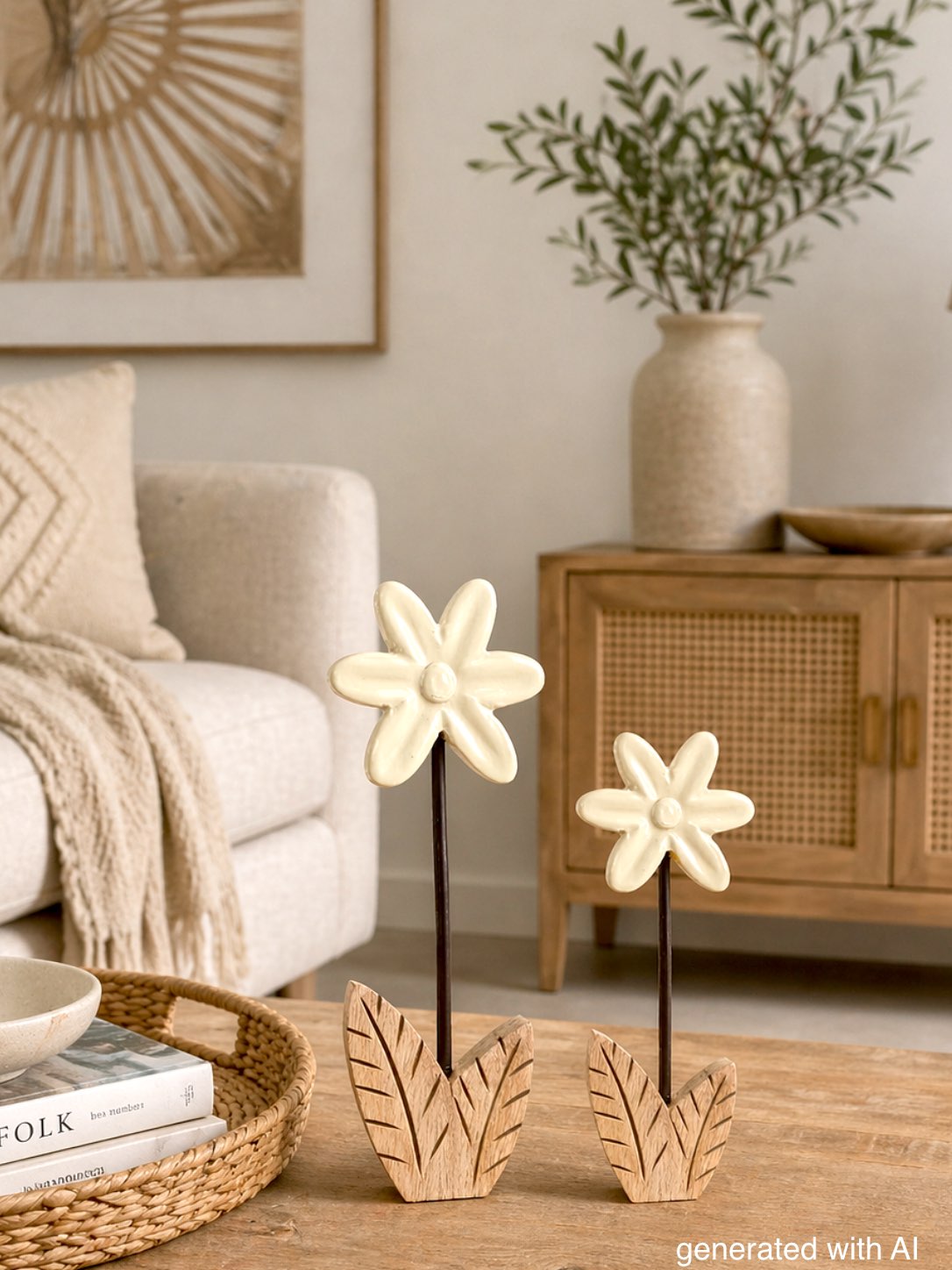 Holz Deko Aufsteller Blume Creme – klassisches Holzdesign mit einer stilvollen, hellen Farbgebung