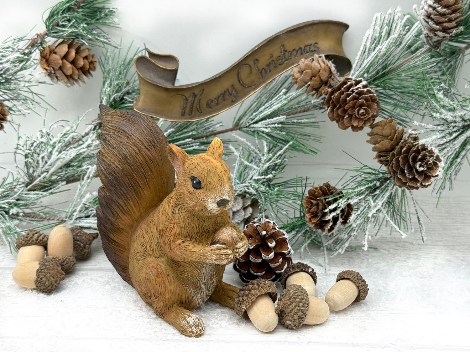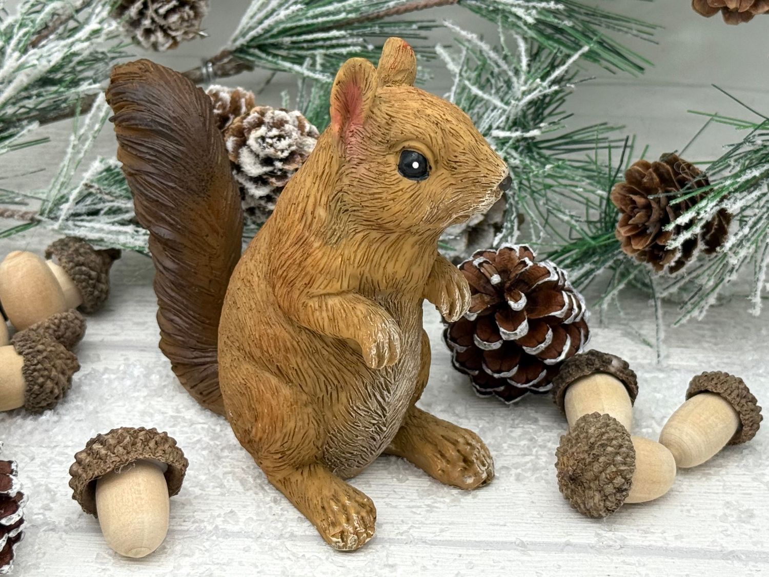 Eine Deko Figur Eichhörnchen aus Polyresin, wahlweise in zwei unterschiedlichen Ausführungen
