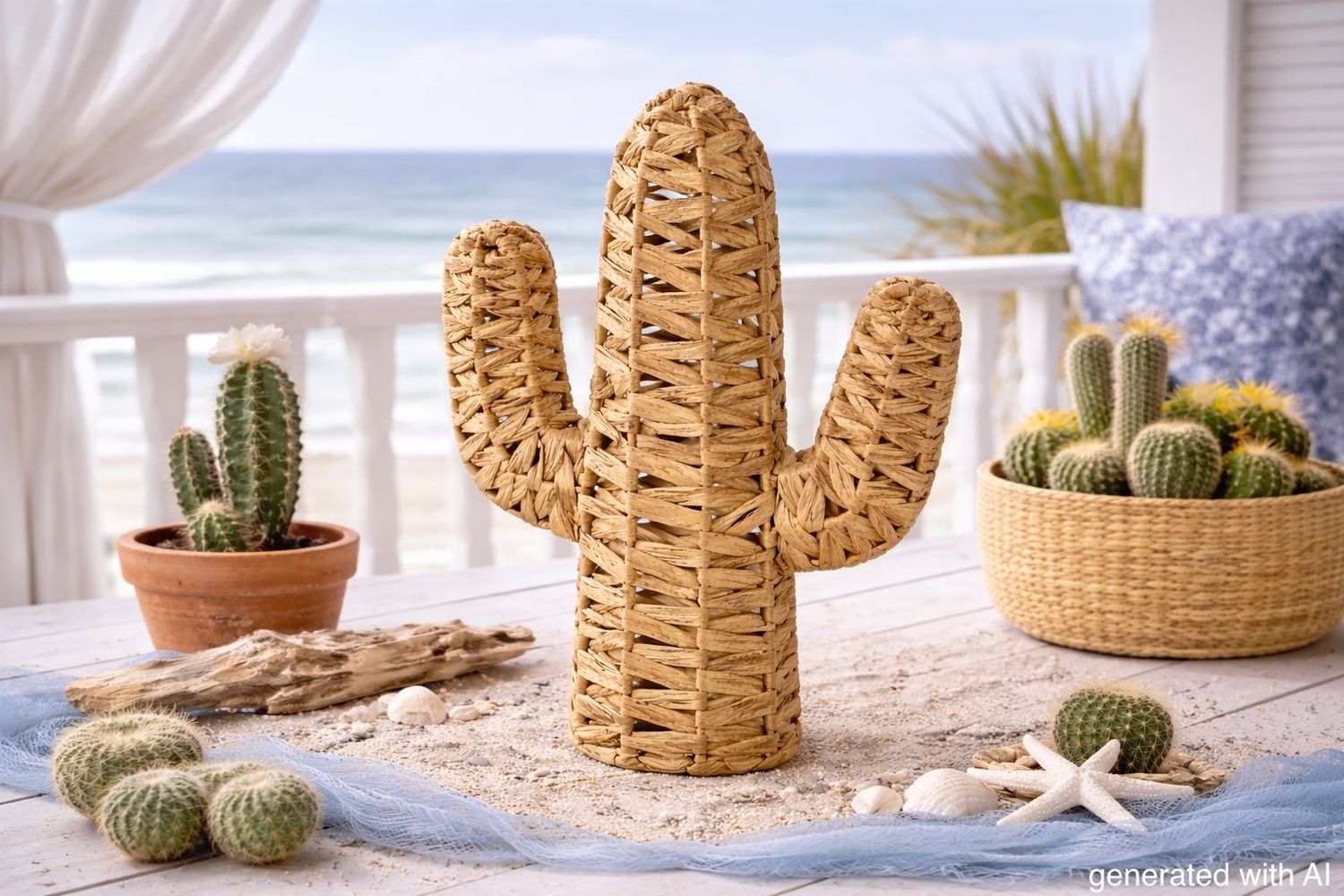 Der Deko Kaktus 36cm aus Wasserhyazinthe mausert sich gerade zum Star aller Deko-Fans