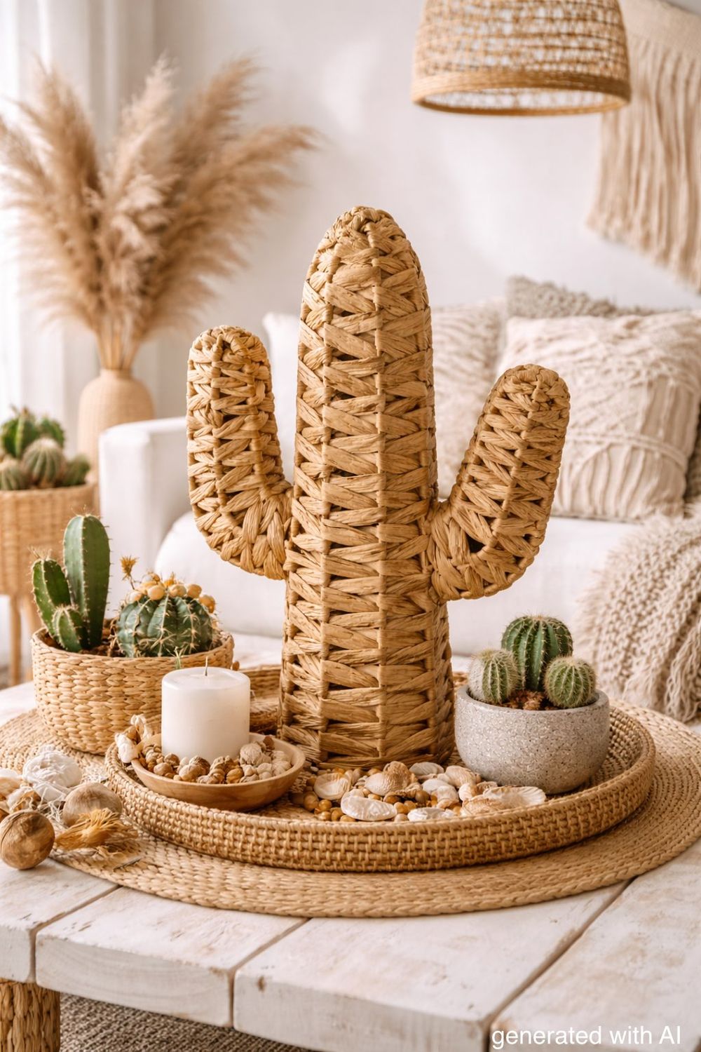 Ein Deko Kaktus in natürlichem Design im Boho- & Wüstenstil zum sofortigen hinstellen am gewünschten Platz.