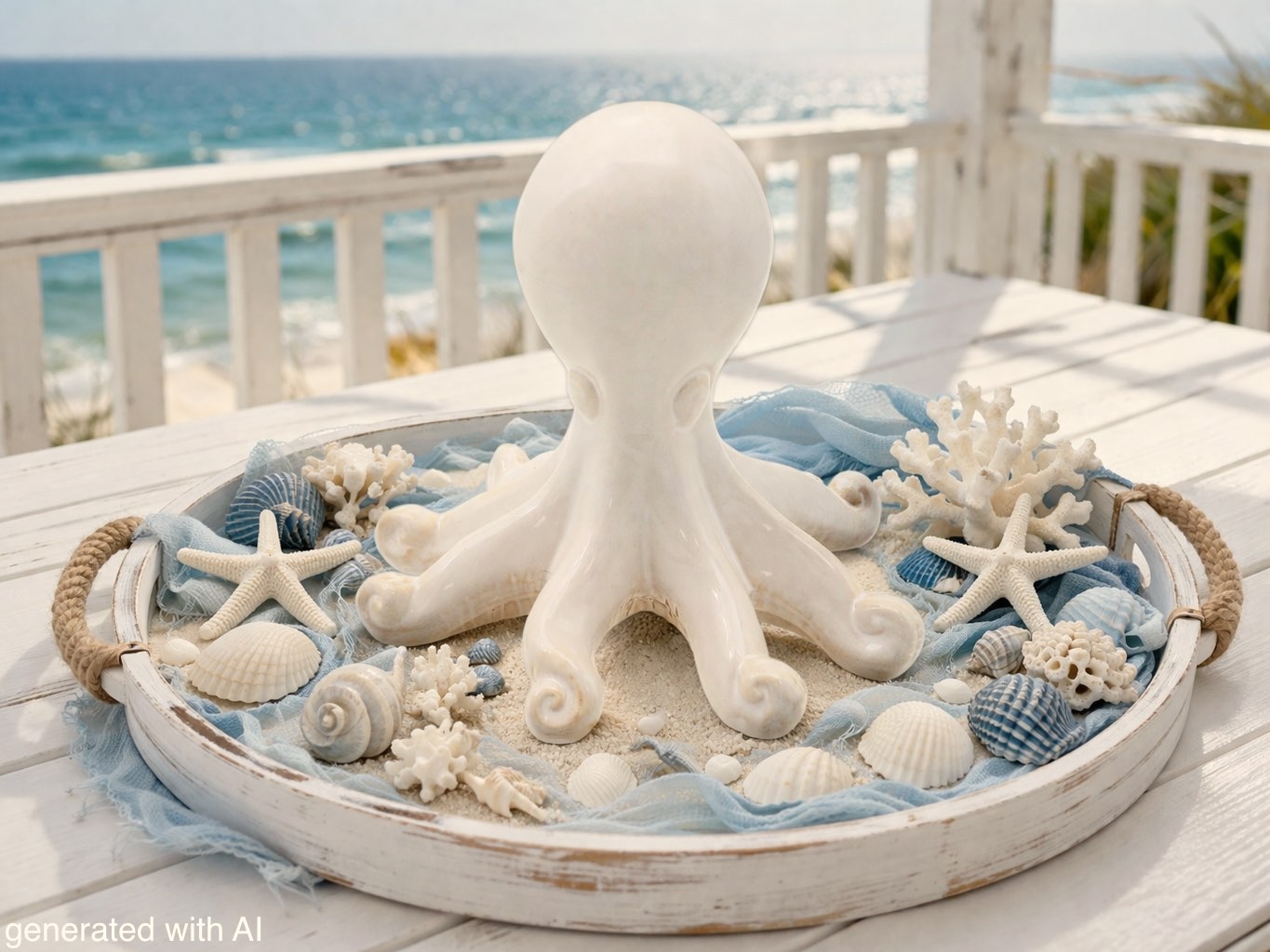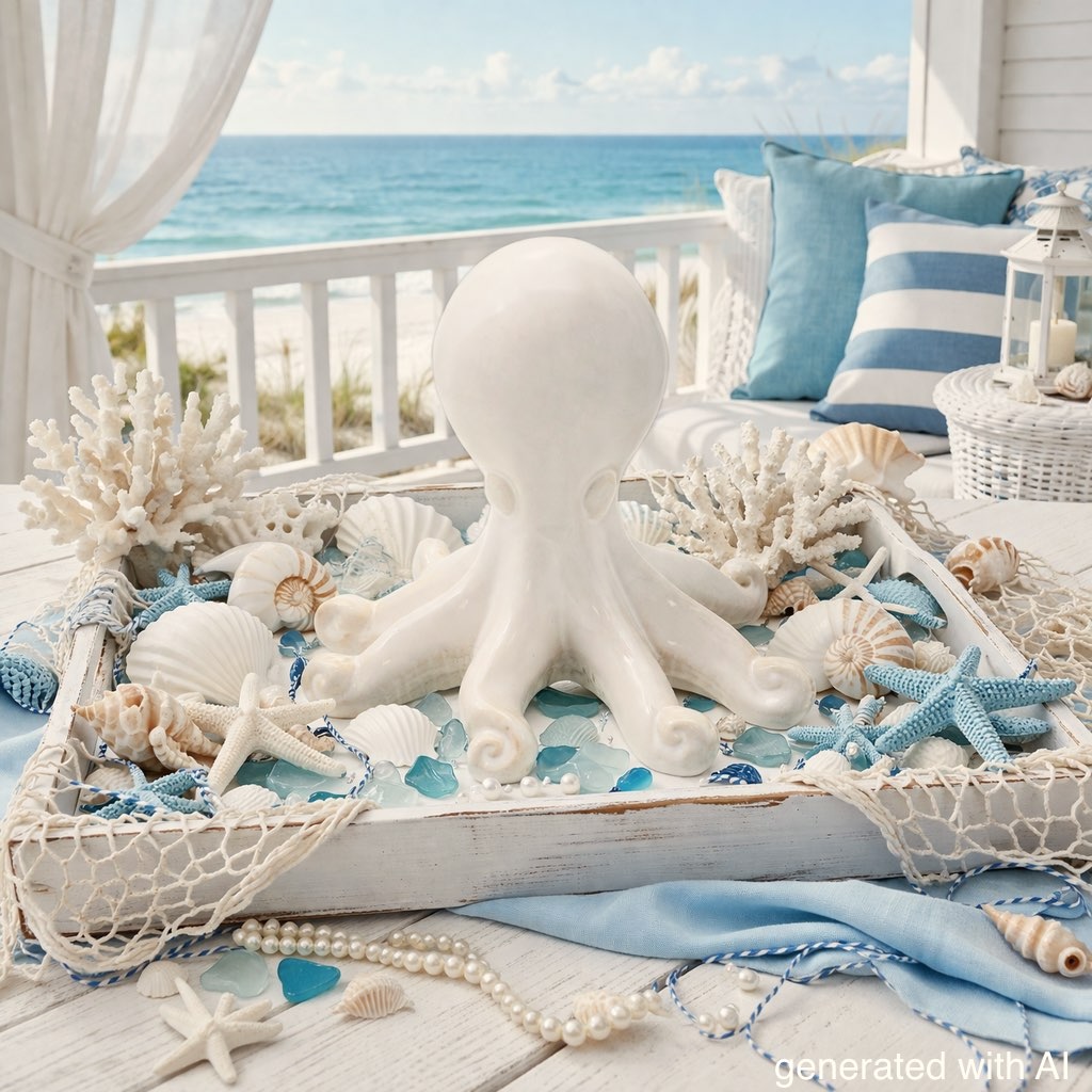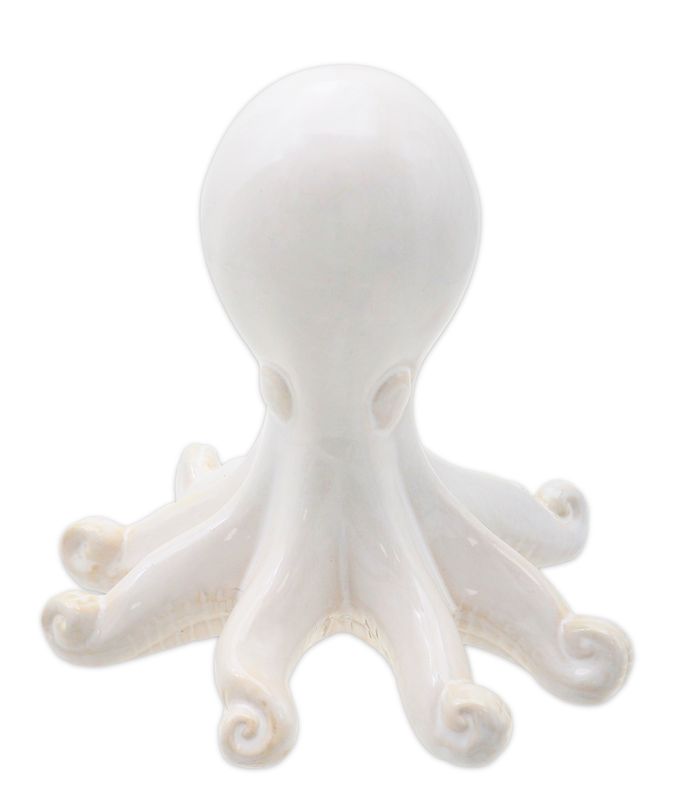 Deko Krake - Oktopus aus Keramik – maritime Figur in Creme