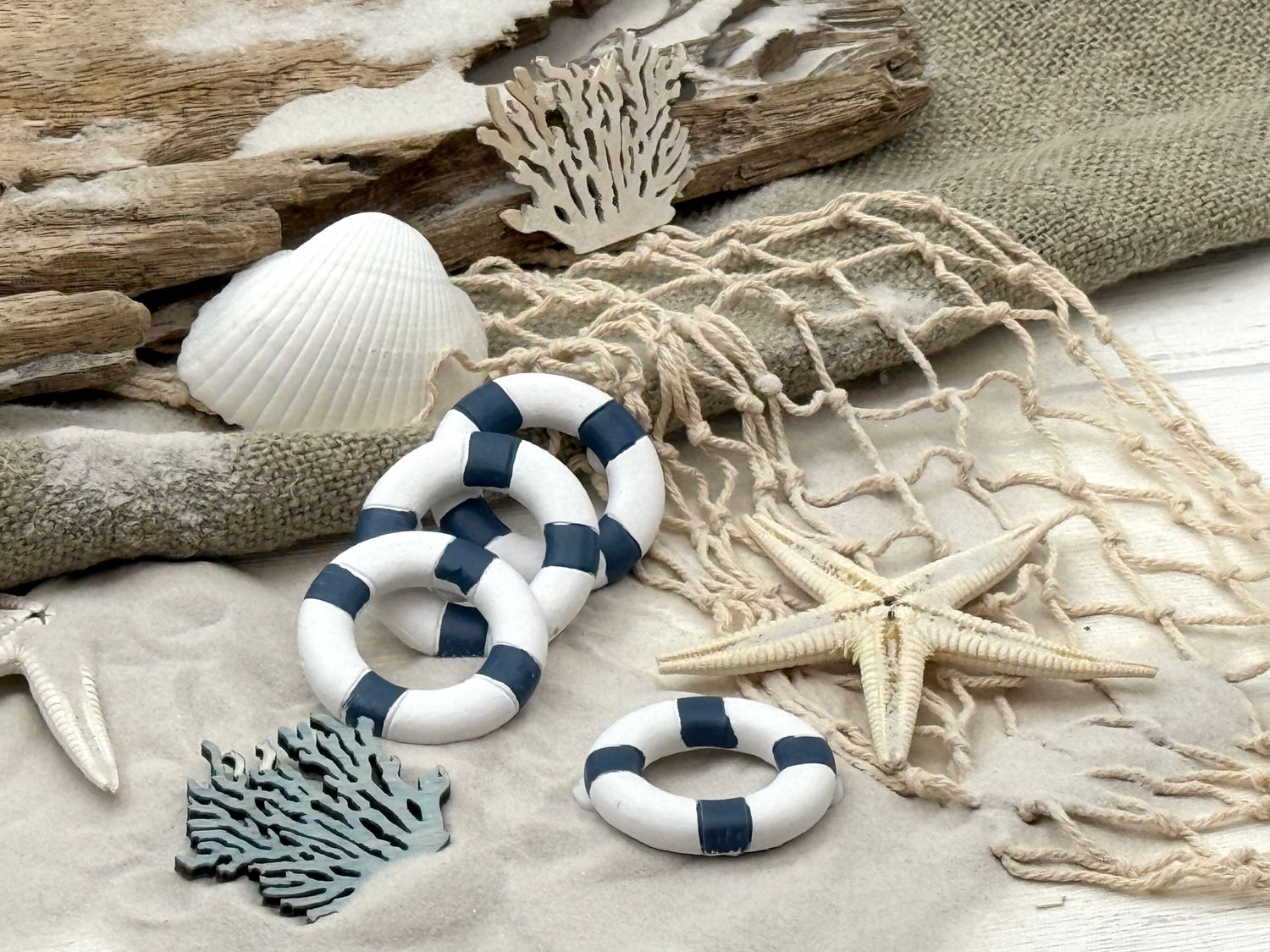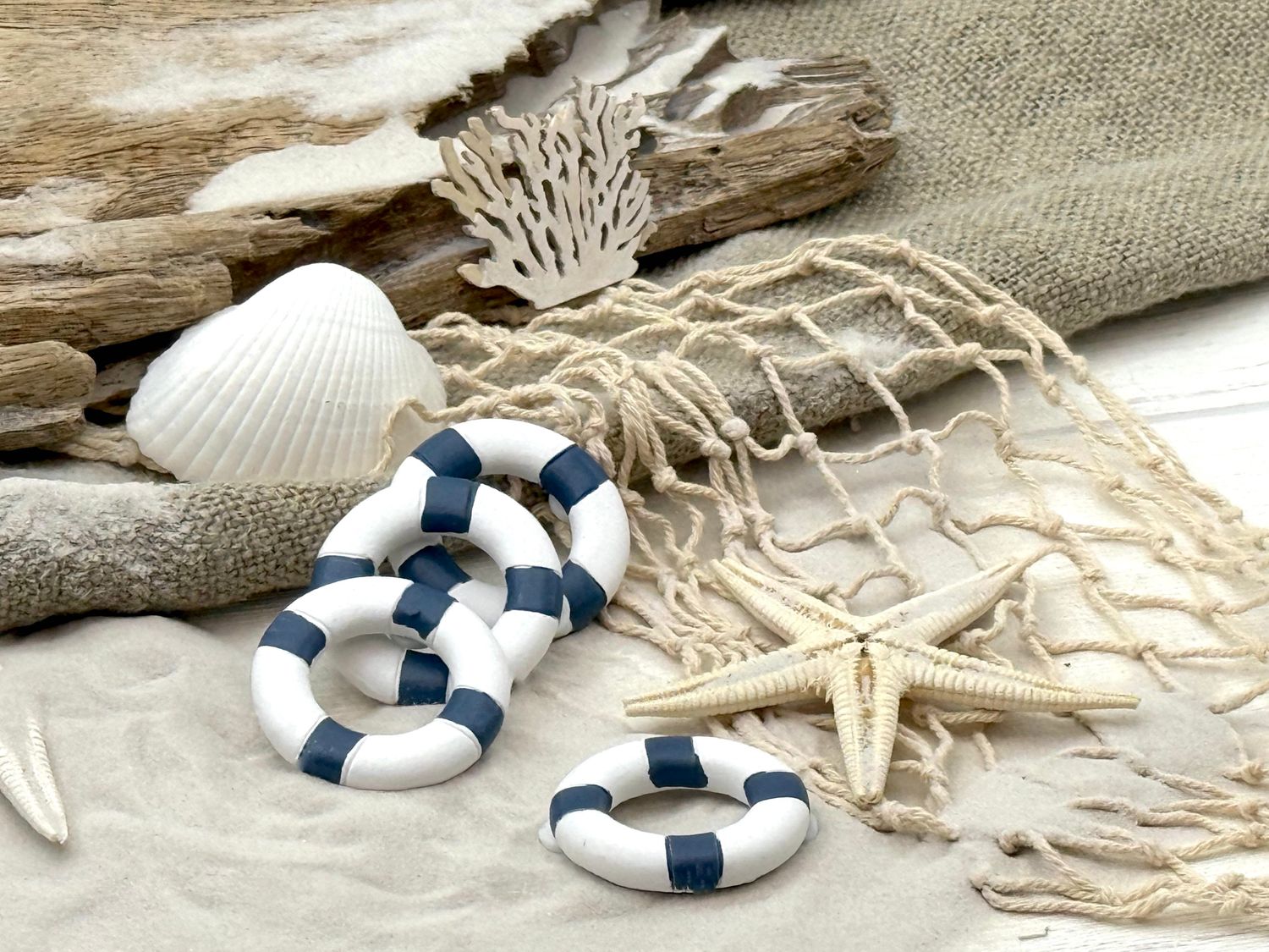 Die kleine Rettungsringe sind dekorativ und praktisch zugleich - ideal für maritime Themenpartys, Sommerfeste, Strandhochzeiten oder Tischdeko im Küstenstil.