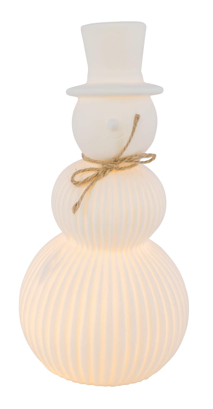 Deko Schneemann Figur mit LED aus Keramik – Winterdeko mit warmem Licht