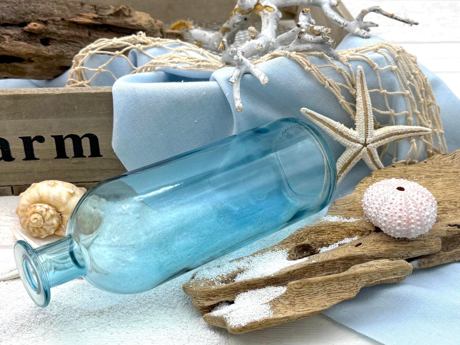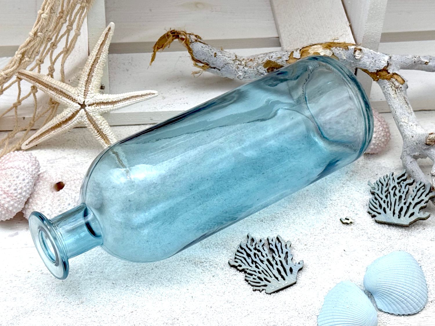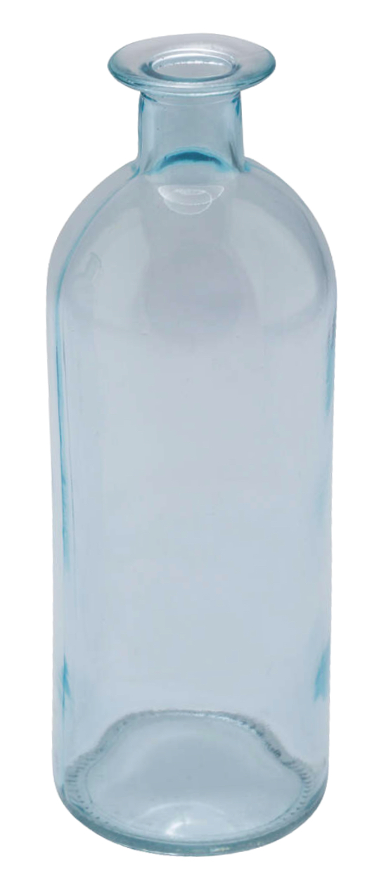 Eine schlanke Deko Vase - Dekoflasche aus hellblau gefärbtem Glas