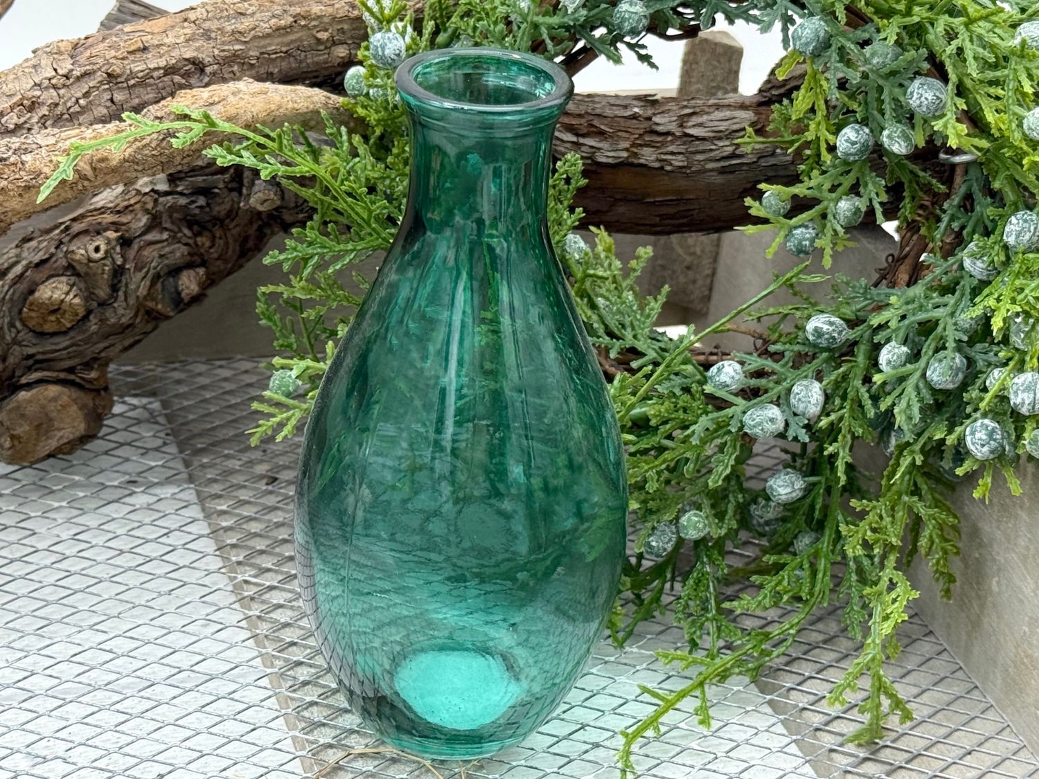 Ein Vasen SETÂ besteht aus zwei unterschiedlich geformten Glasvasen in Petrol.
