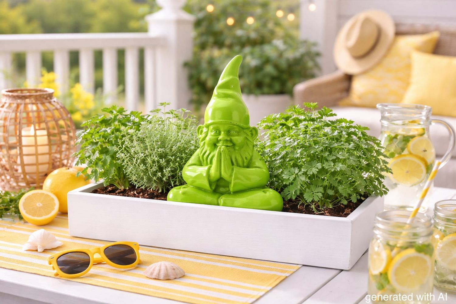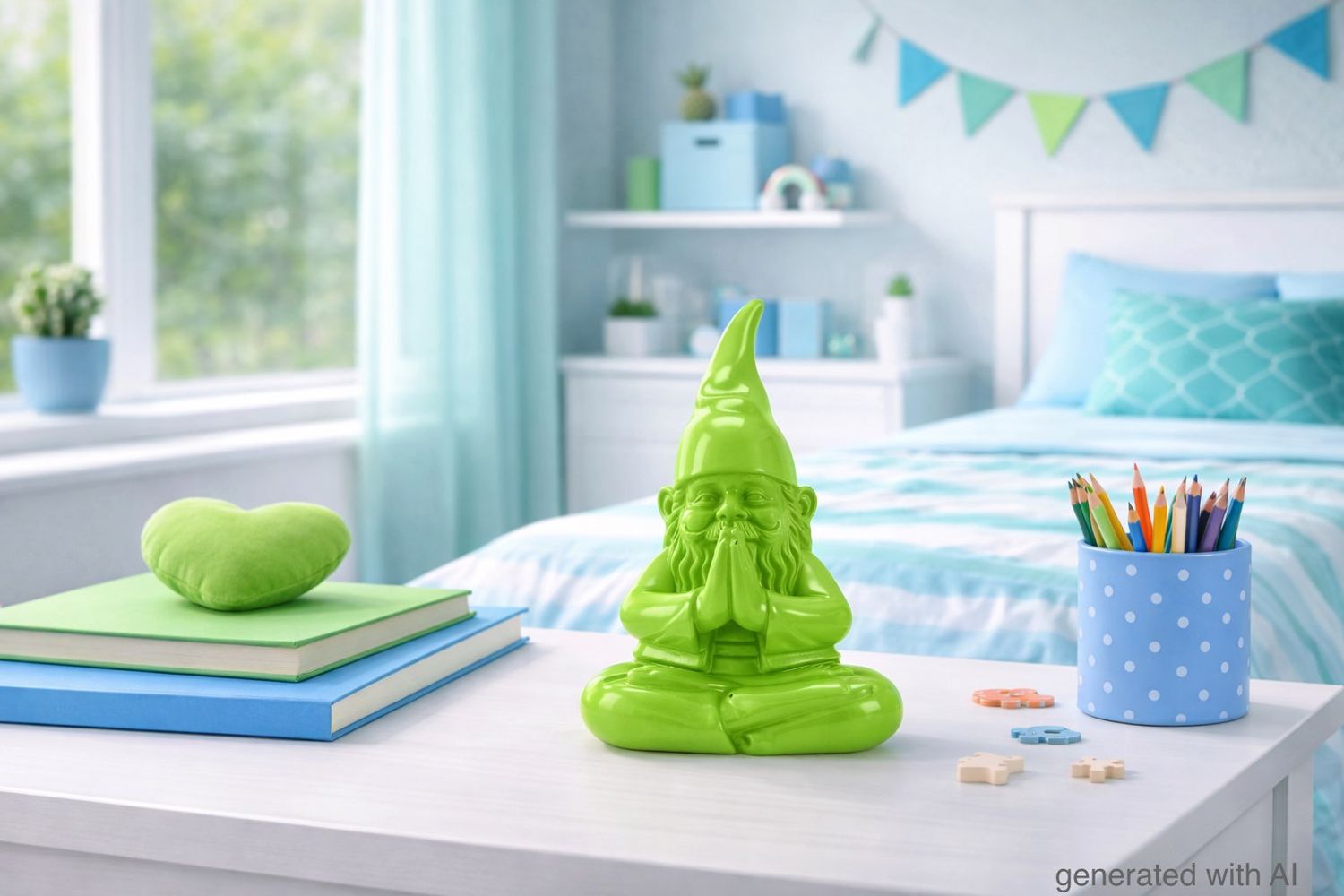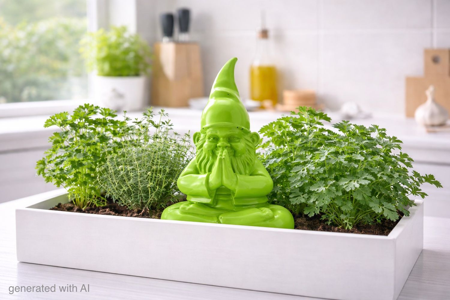 Entspannter Gartenzwerg in Yoga-Pose – Ruhige Deko in harmonischem Grün