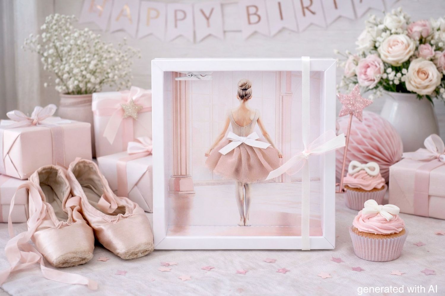 Mit feinen Rosa- und Weißtönen, einem edlen Studiomotiv und einer grazilen Ballerina wird Ihr Geschenk zu einem besonderen, stilvollen Erlebnis.