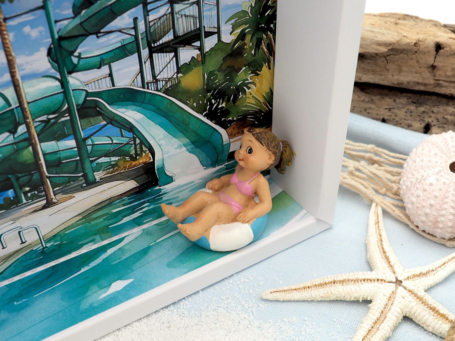 Mit dieser liebevoll gestalteten Geld oder Gutschein Box für Freibad, Aquapark, Wasserpark, Erlebnisbad oder Sommer Urlaub verschenkst Spaß und Vorfreude.