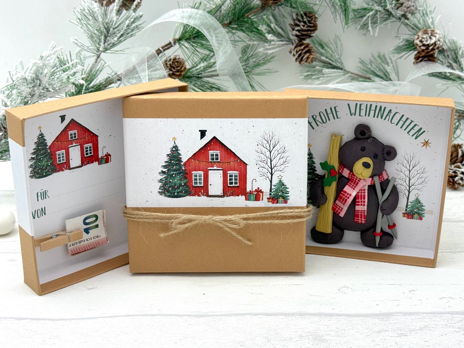 Weihnachtliche Geschenkbox für Geld & Gutscheine – liebevoll gestaltet und bereit zum Verschenken