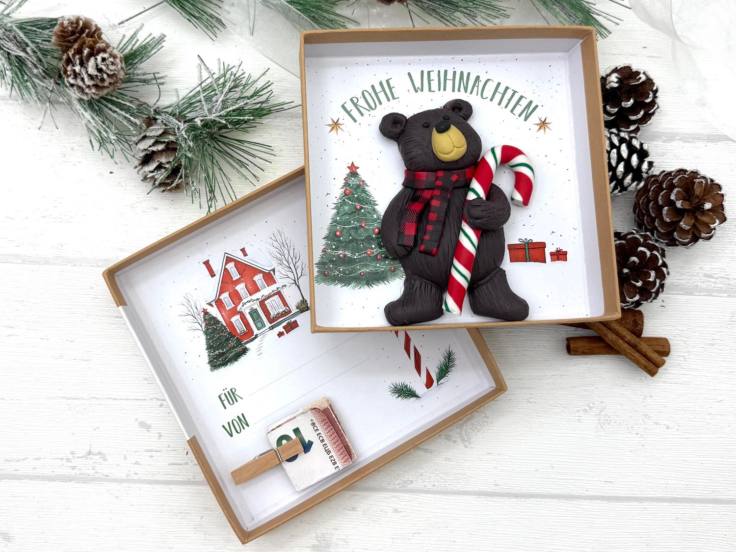 Weihnachtliche Geschenkbox für Geld & Gutscheine – liebevoll gestaltet und bereit zum Verschenken