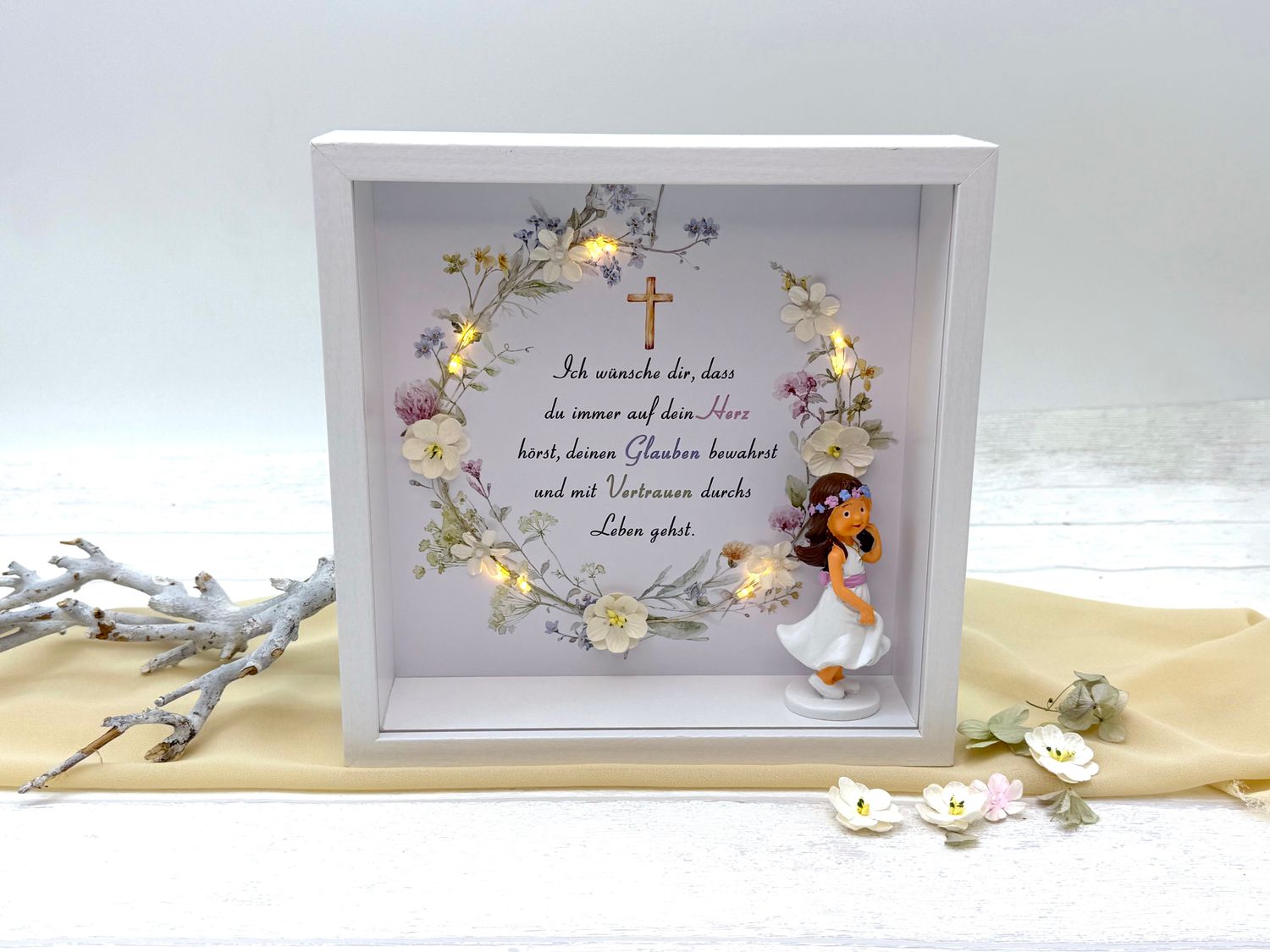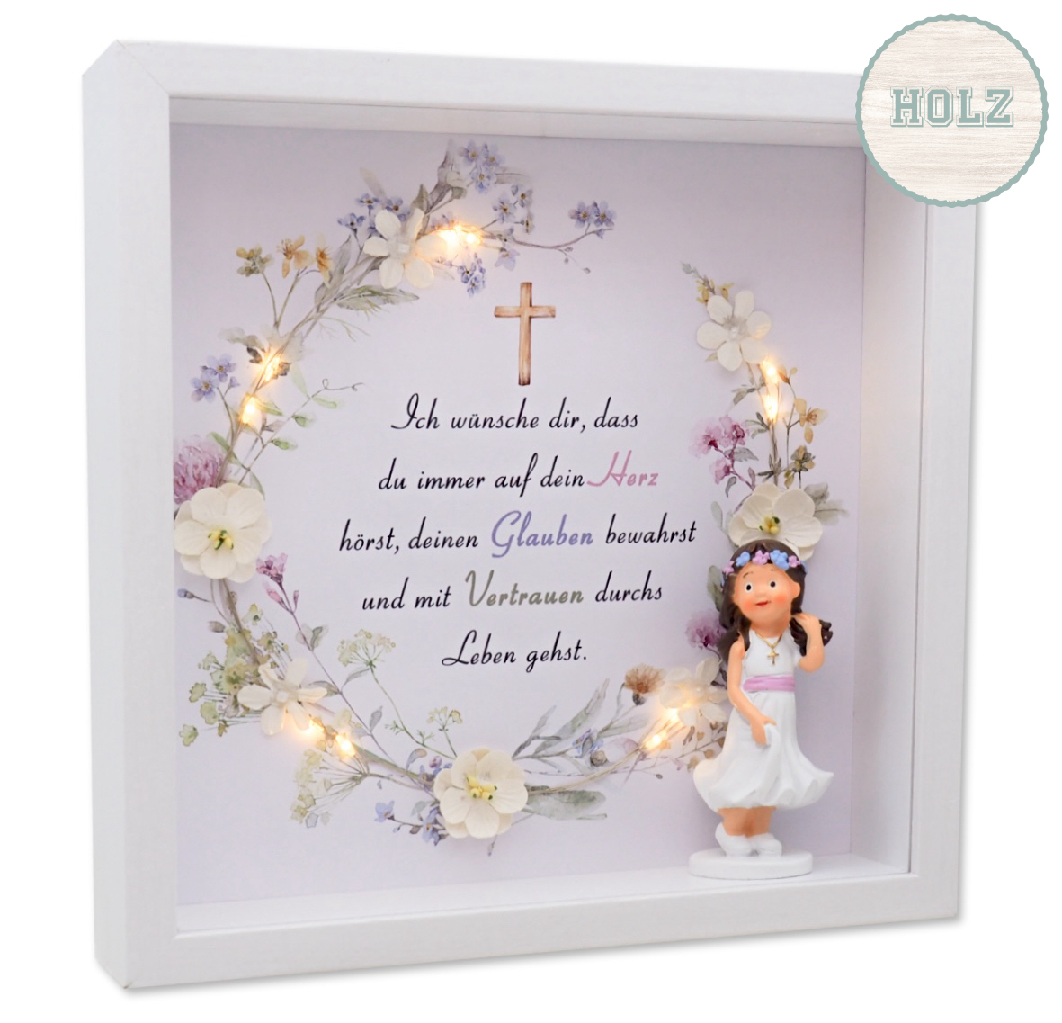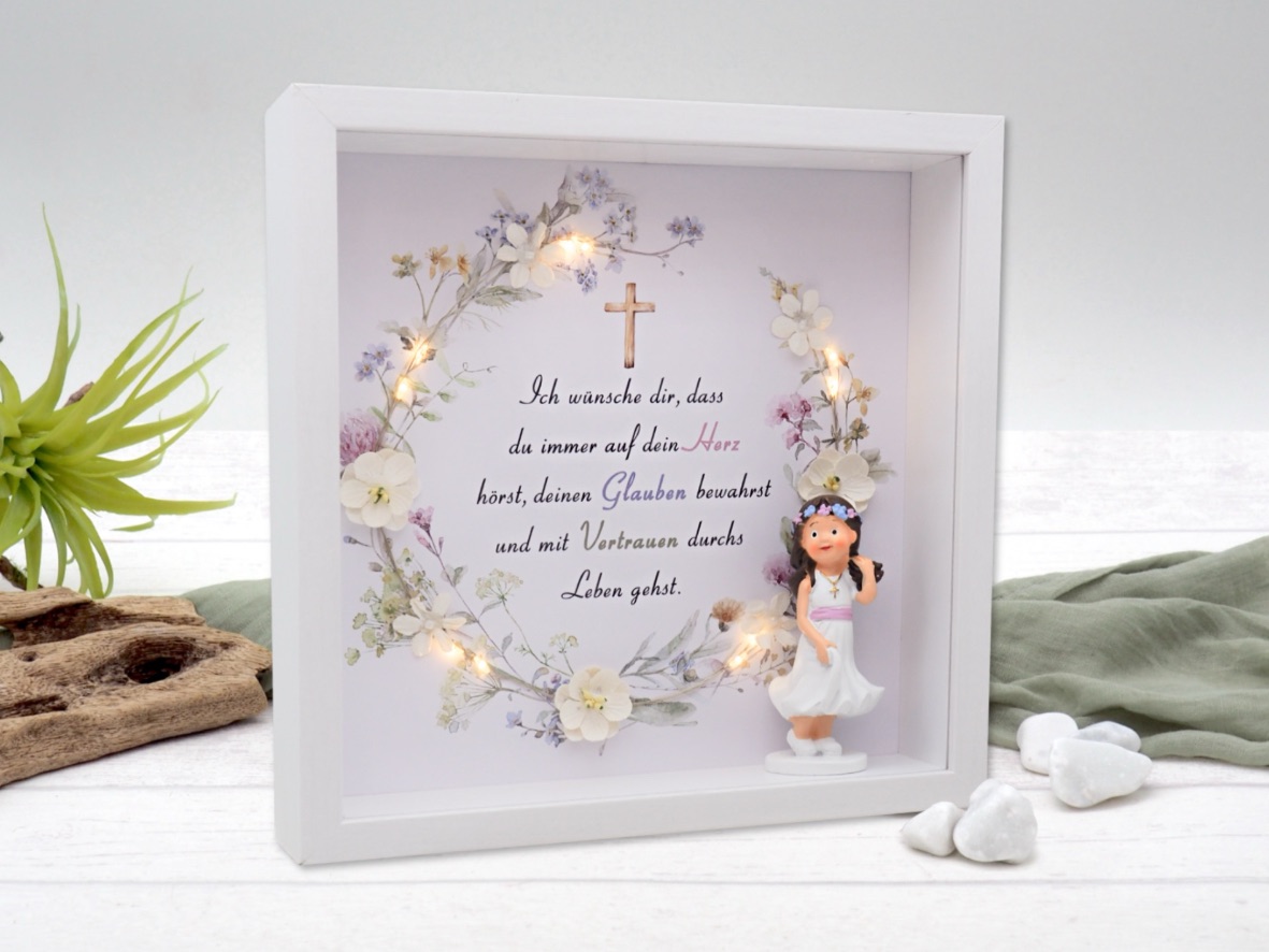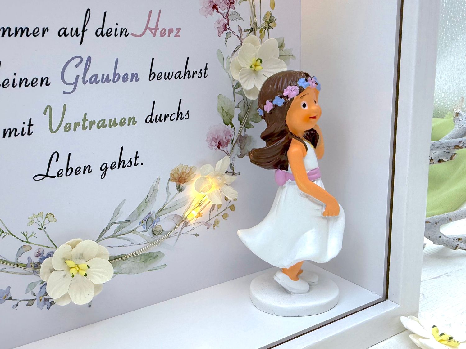 Geschenkrahmen zur Kommunion & Konfirmation – Mädchen im Kommunionskleid als liebevolles Glaubenssymbol