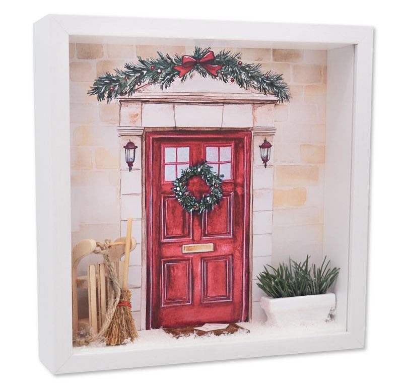 Geschenkrahmen aus Holz- Bilderrahmen komplett fertig dekoriert mit Motiv „Weihnachtliche Haustür“- so müssen Sie ihn nur noch überreichen