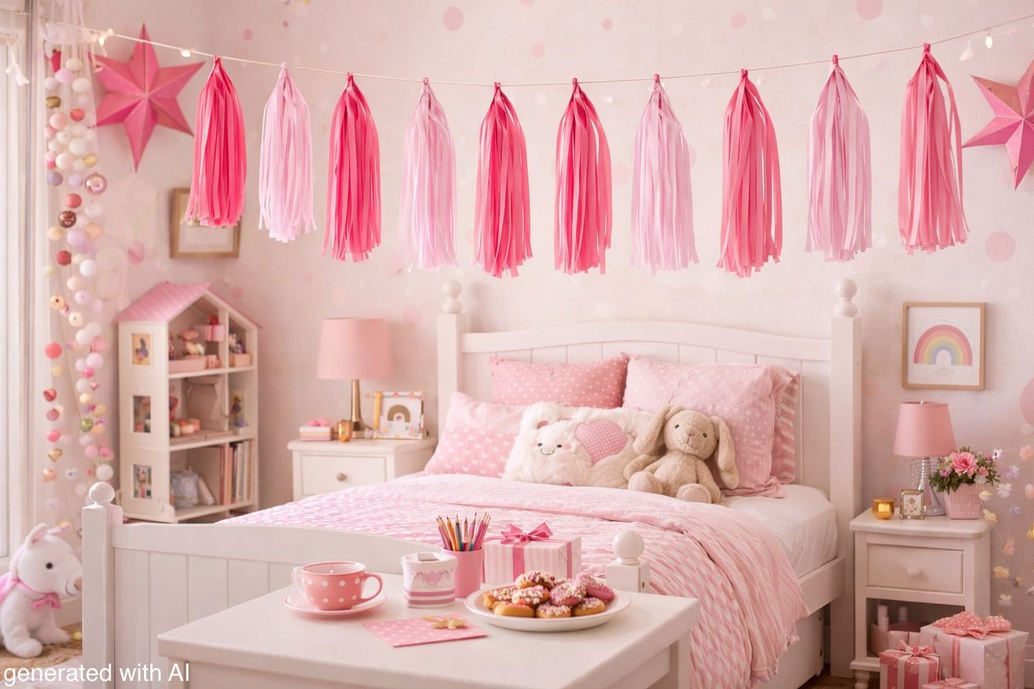 Quasten Deko Girlande Rosa und Pink für Baby Dusche - für Geburtstag, Hochzeit, Taufe, Kindergeburtstag, Party