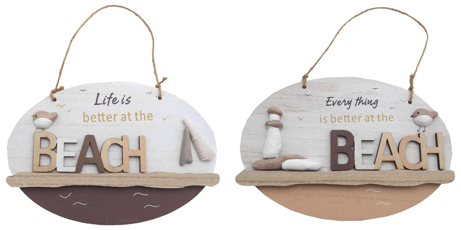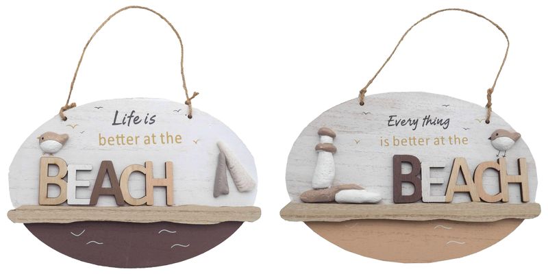Hänger Beach Schild aus Holz zum Aufhängen Maritim Deko Beach 2 fach sort. 24 x 16cm
