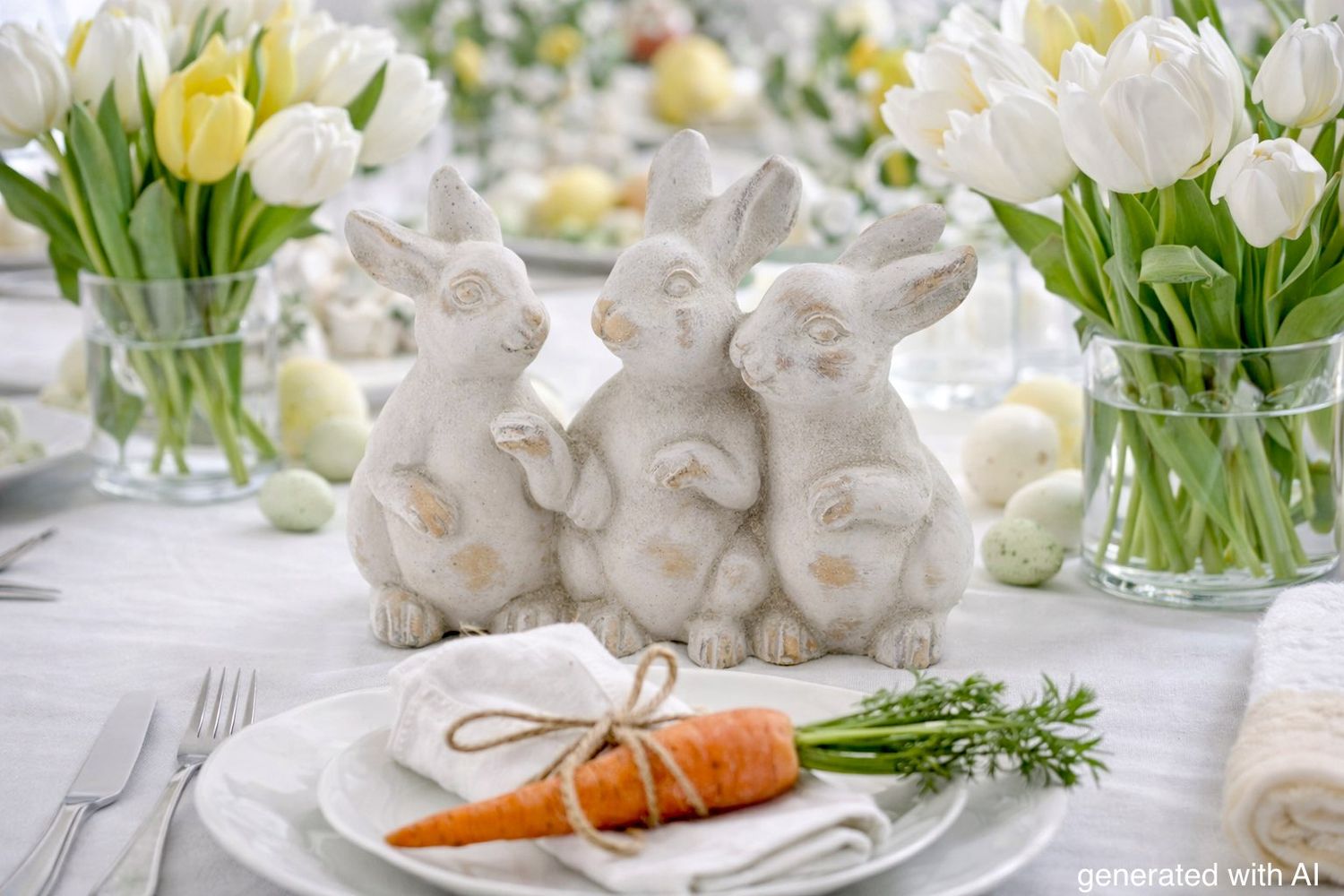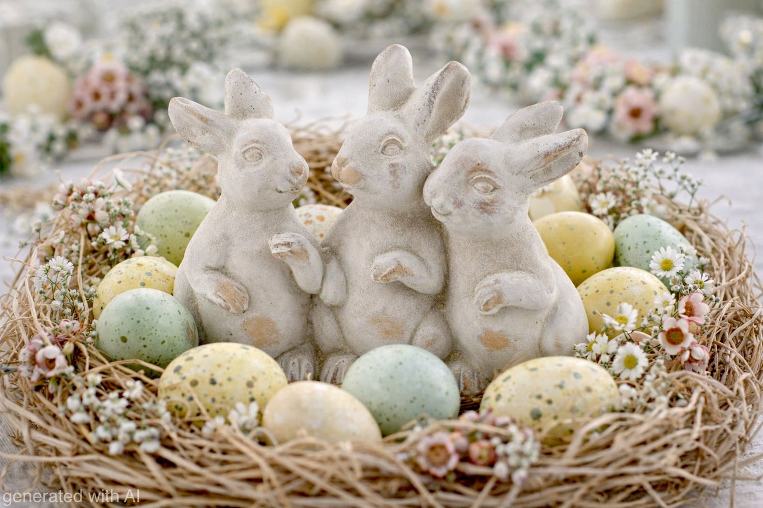 Die drei liebevoll gestalteten Hasen, die fest miteinander verbunden sind und so eine harmonische kleine Figurengruppe bilden.