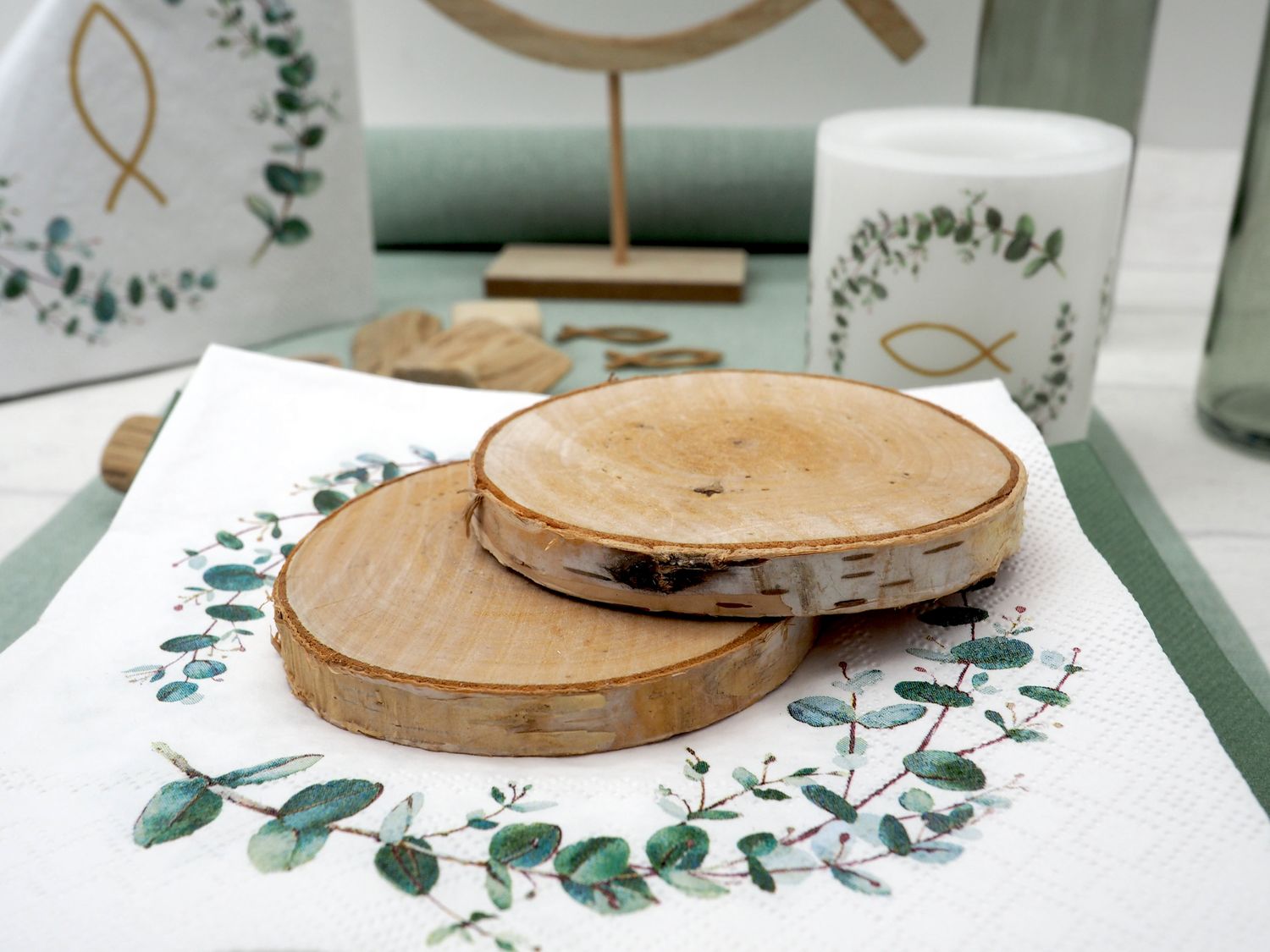 Birkenscheiben mit einem Durchmesser von 8-12 cm sind vielseitig einsetzbare Naturmaterialien, die durch ihre einzigartige Optik und Natürlichkeit bestechen.