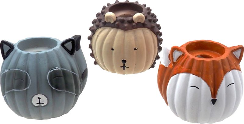 Ob als Fuchs, Igel oder Waschbär – jeder Kerzenhalter eignet sich für klassische Teelichthalter, Stabkerzen oder für batteriebetriebene Kerzen (dadurch sicher auch für Kinderzimmer und Kindergeburtstage).