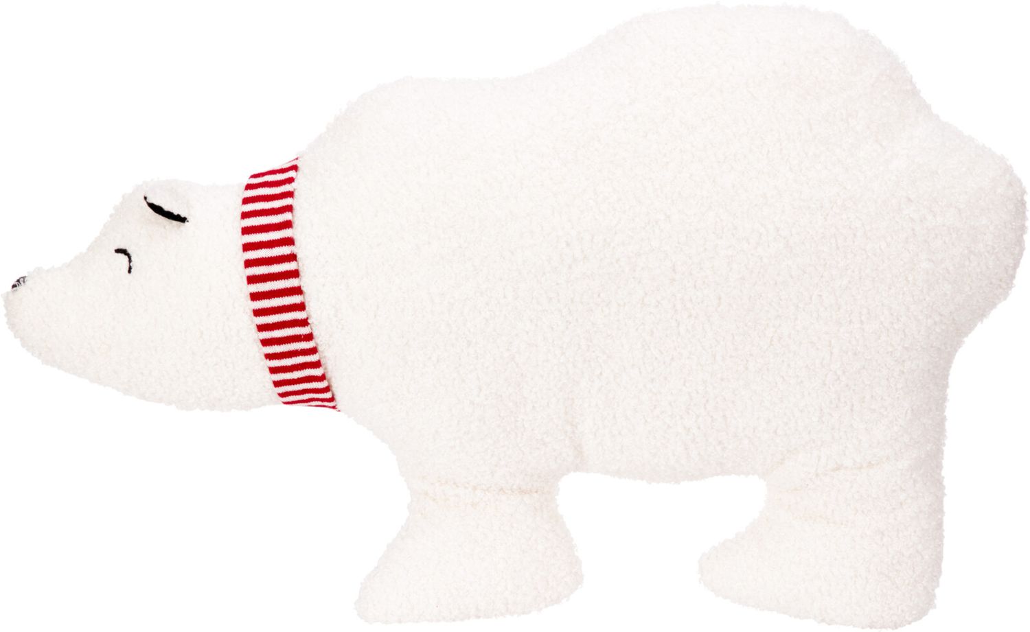 Der weiche Teddy-Stoff und der leuchtend rote Schal verleihen dem Kissen eine besonders gemütliche, festliche Ausstrahlung.