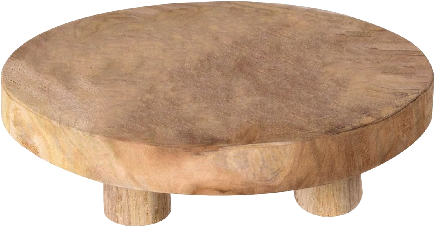 Maße: Ø ca. 20 cm, ca. 2c m dickes Holz und 6 cm Hoch.