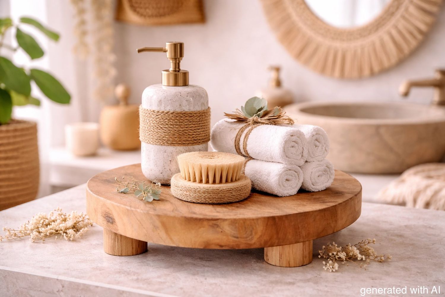 Dieser kleine Hocker mit vier Beine ist ein vielseitiges und dekoratives Wohnaccessoire im natürlichen Look.