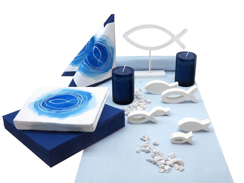 Tischdekoration SET zur Kommunion und Konfirmation in Blau und Weiß - Fisch Motto