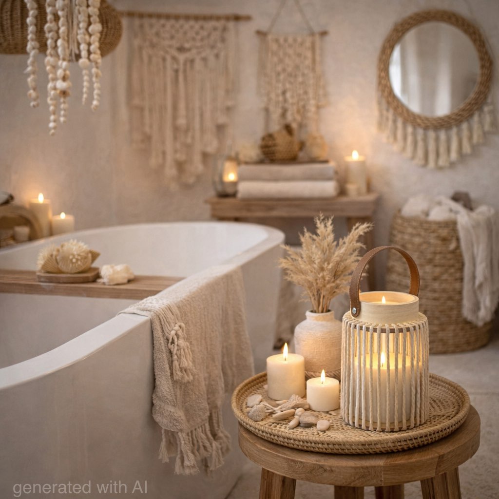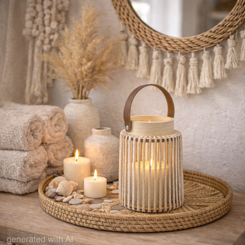 Deko Laterne in Weiß & Creme mit Windlicht mit Glas in Boho Stil überzeugt durch ihren natürlichen Look