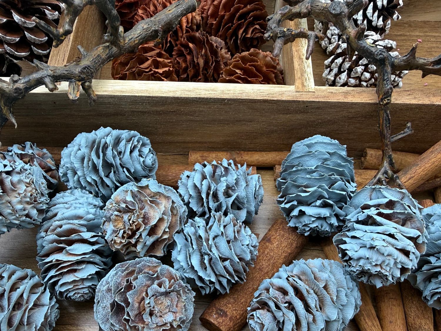 16 blauen Zapfen bringen als Streudeko, für Weihnachtsdekoration, Adventskränze, Herbst Gestecke oder andere kreative Bastelprojekte