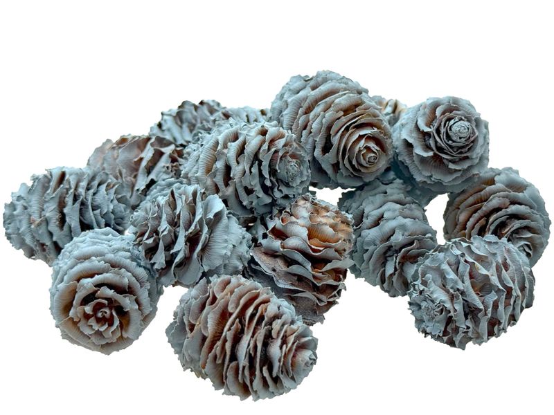 16 Stück Natur Strictum Zapfen in Blau gefärbt.