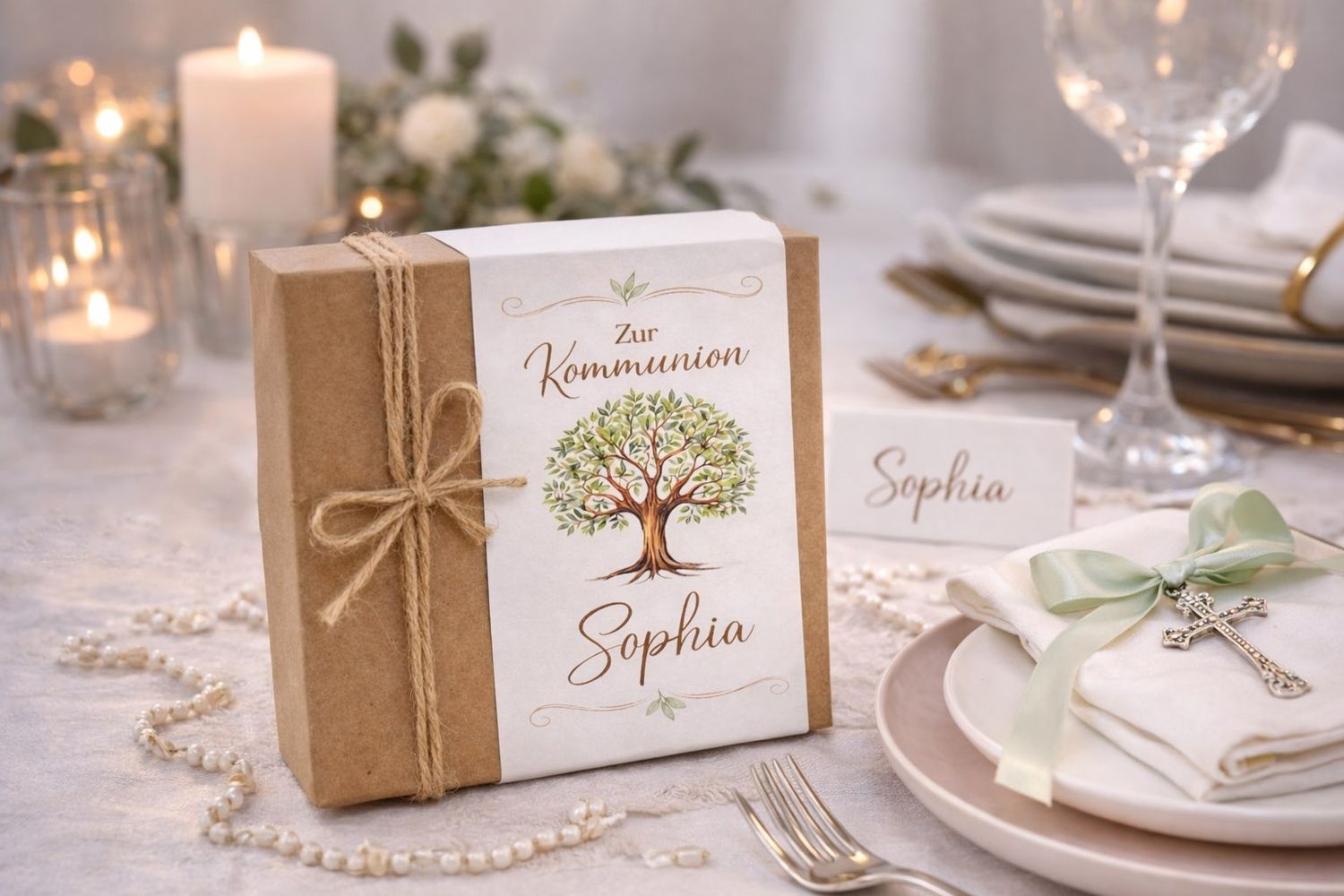 Mit dem Symbol Lebensbaum, ideal für besondere Anlässe wie Kommunion, Konfirmation, Taufe oder Geburtstag.