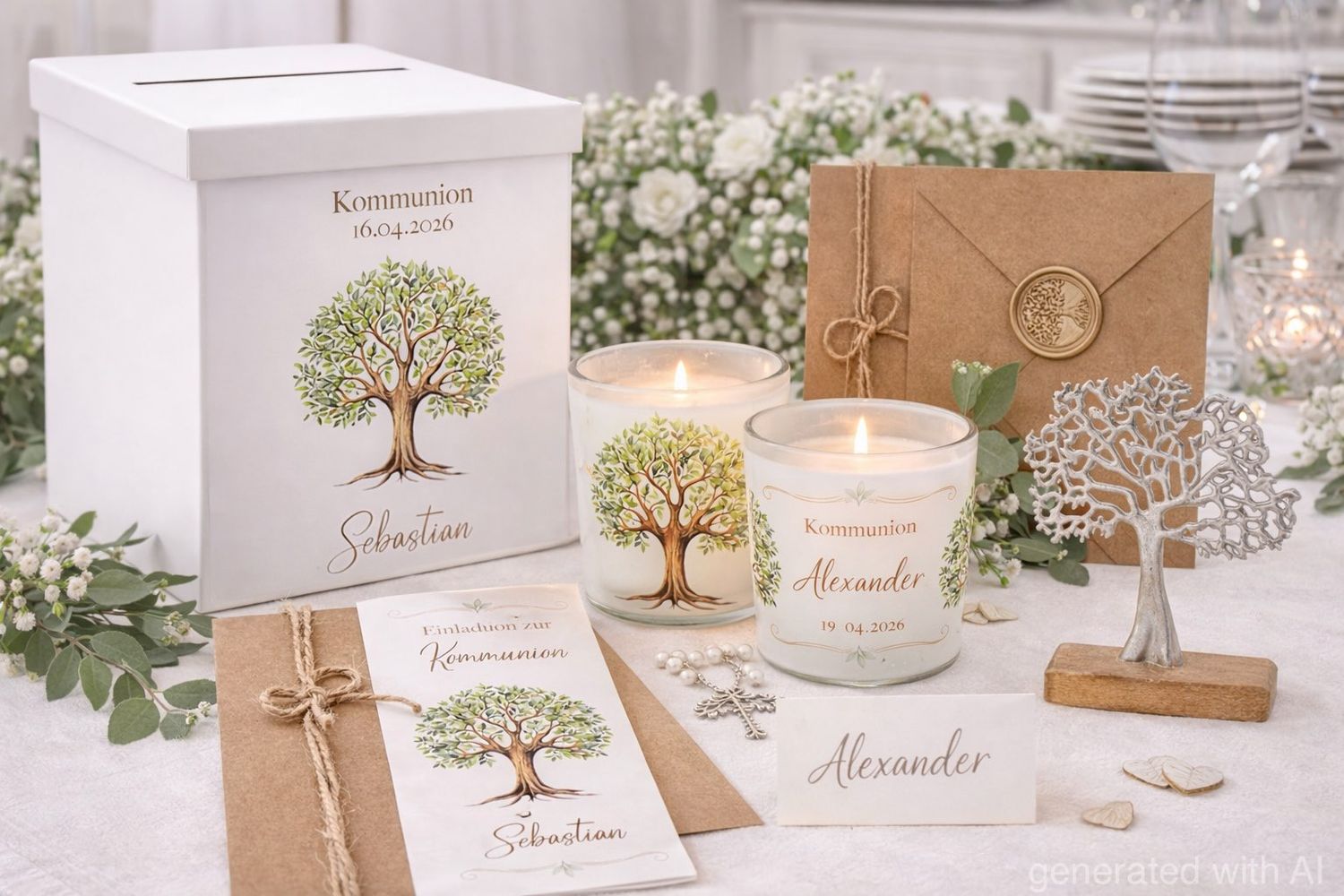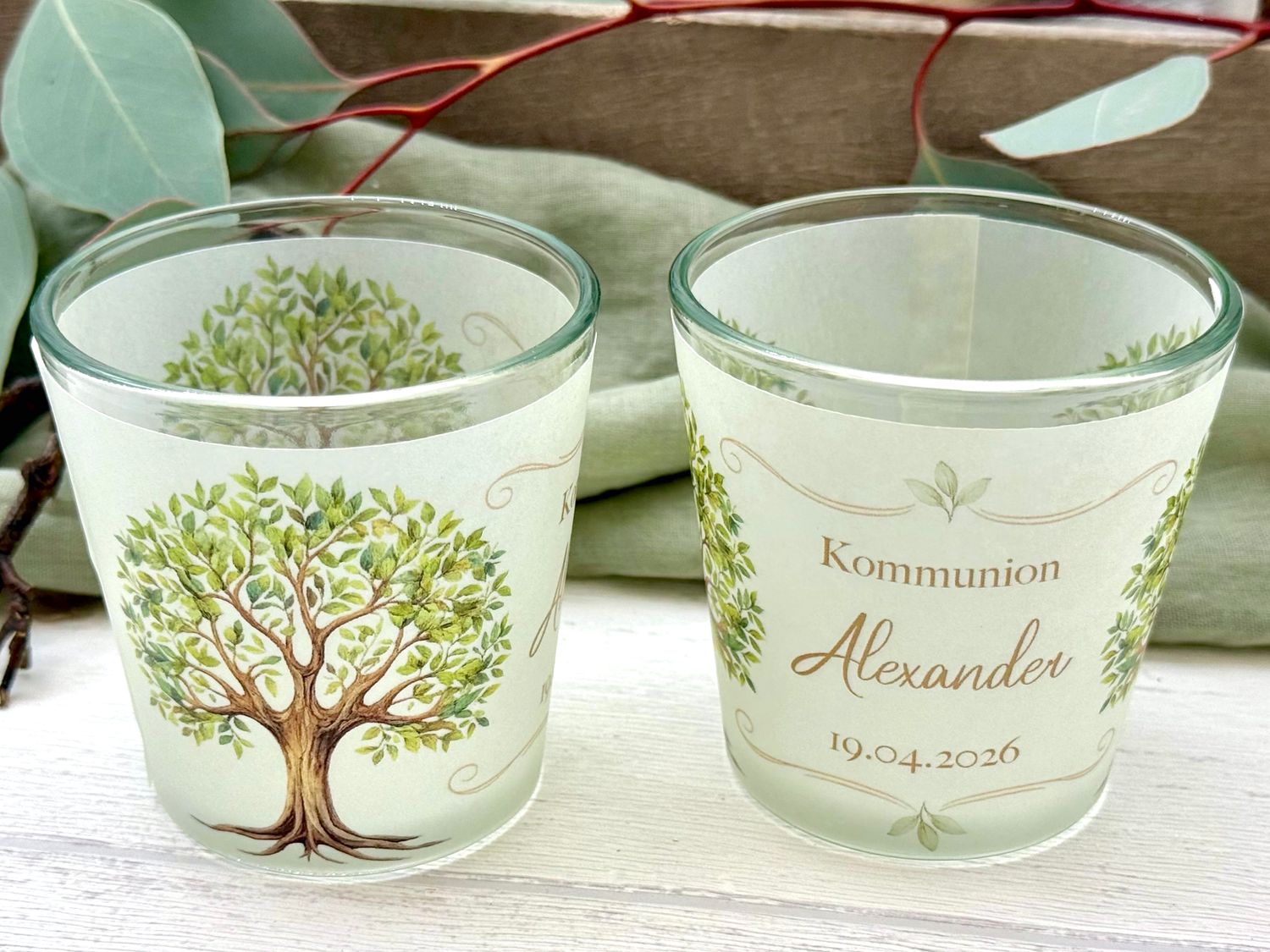 Die transparente Banderole mit dem symbolträchtigen Baum des Lebens-Motiv verleiht jedem Glas eine elegante Leichtigkeit und macht es zu einem echten Blickfang – ob als Tischdekoration, Geschenk oder liebevolle Erinnerung.