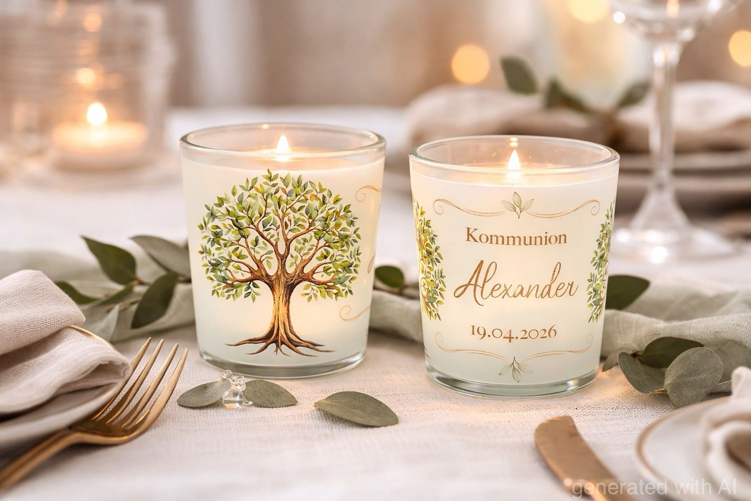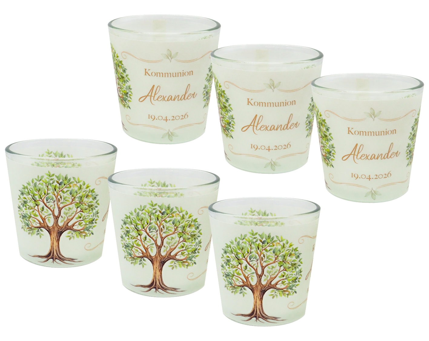 Personalisierte Windlichter mit Baum des Lebens – 2 oder 6 Stück – Tischdeko & Gastgeschenk