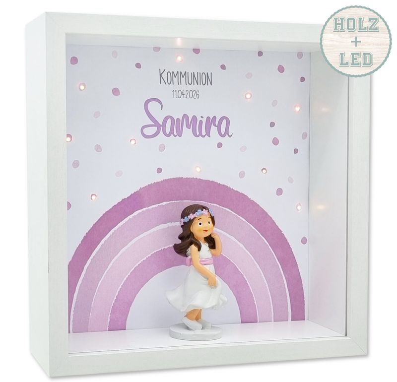 Personalisierter Holz Bilderrahmen Regenbogen Lila Mädchen LED Lichterkette Konfirmation Kommunion Geschenk