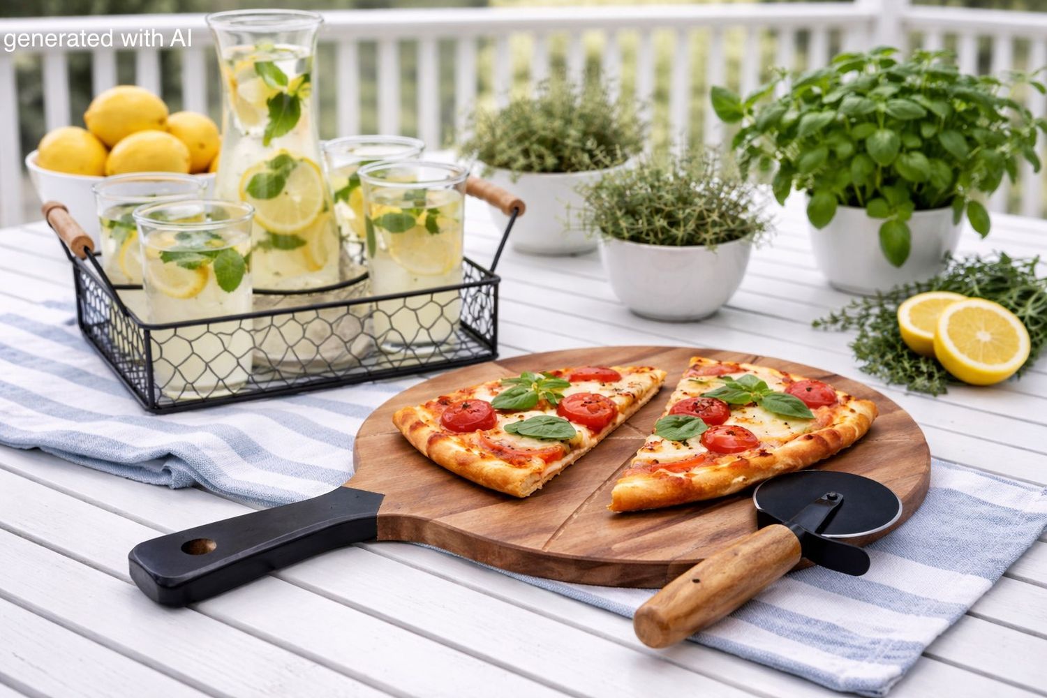 Pizzabrett aus Akazienholz mit Pizzaschneider – Pizza stilvoll servieren & schneidenÂ